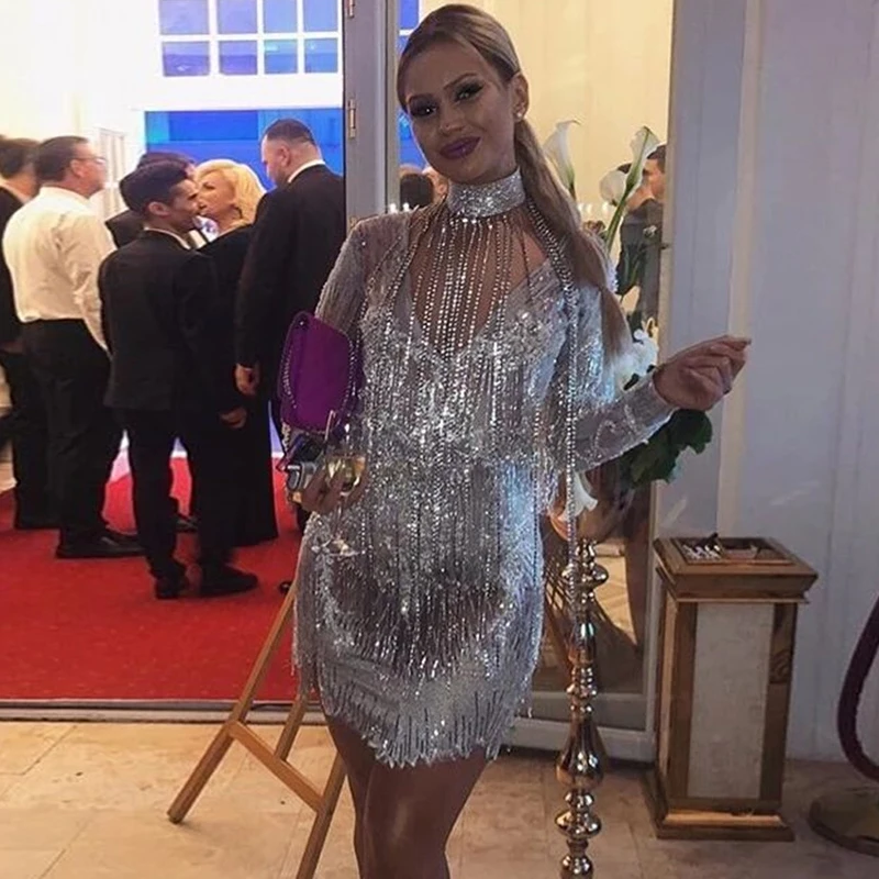 - Style 1: Gold Silver Bling Rhinestone Mini Dresses