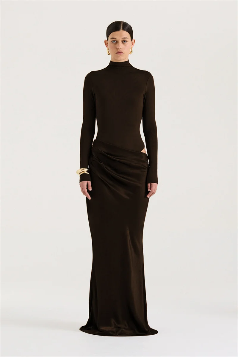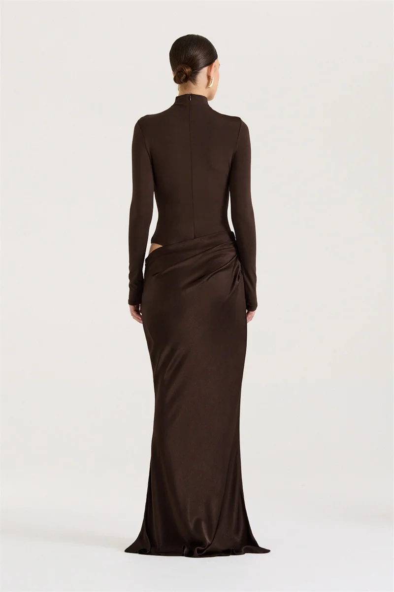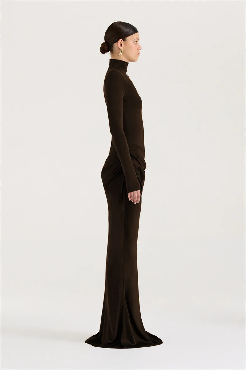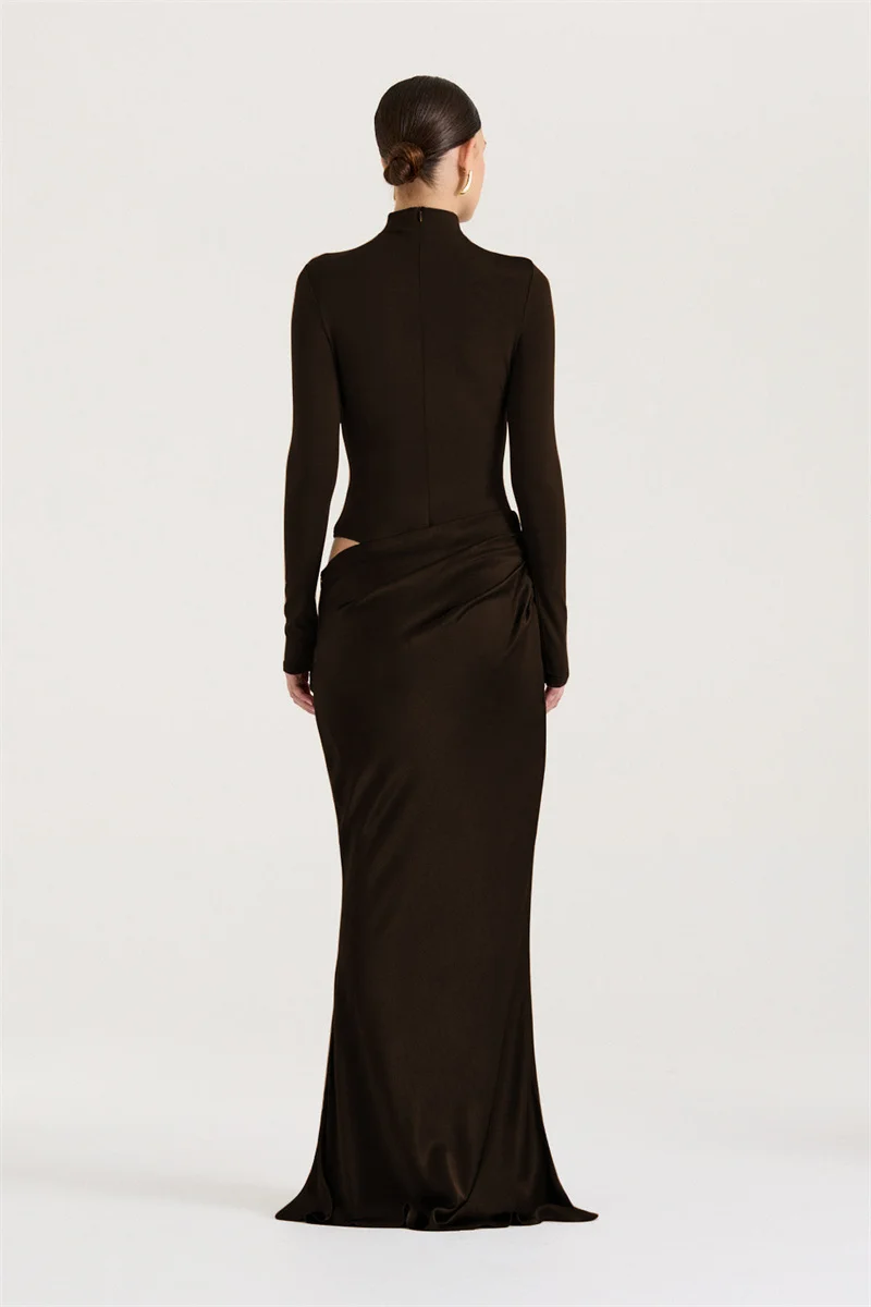 QueenLine Hollow Out Turtleneck Ruched Bodycon Long Sleeve Sexy Maxi Dress