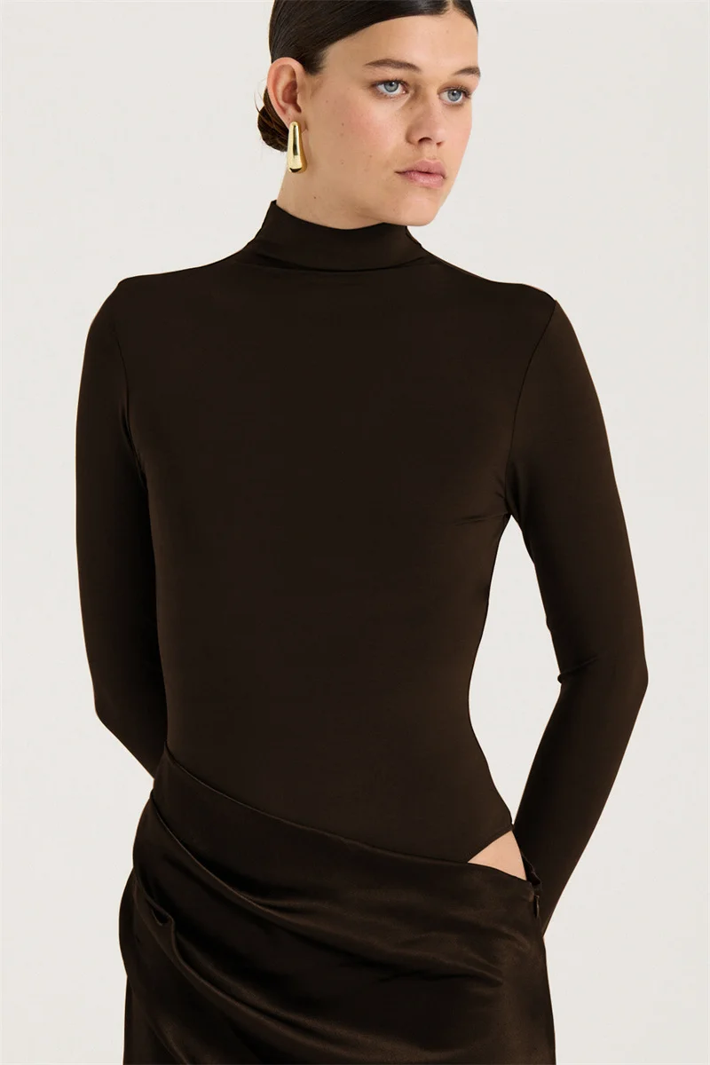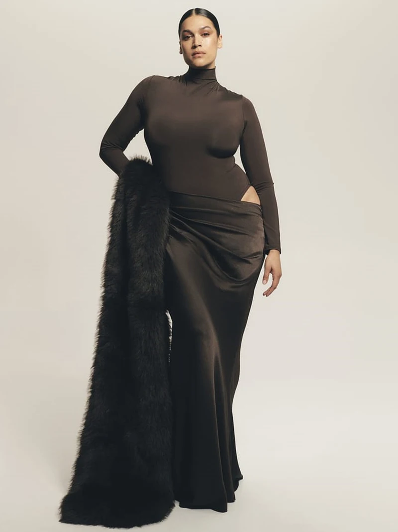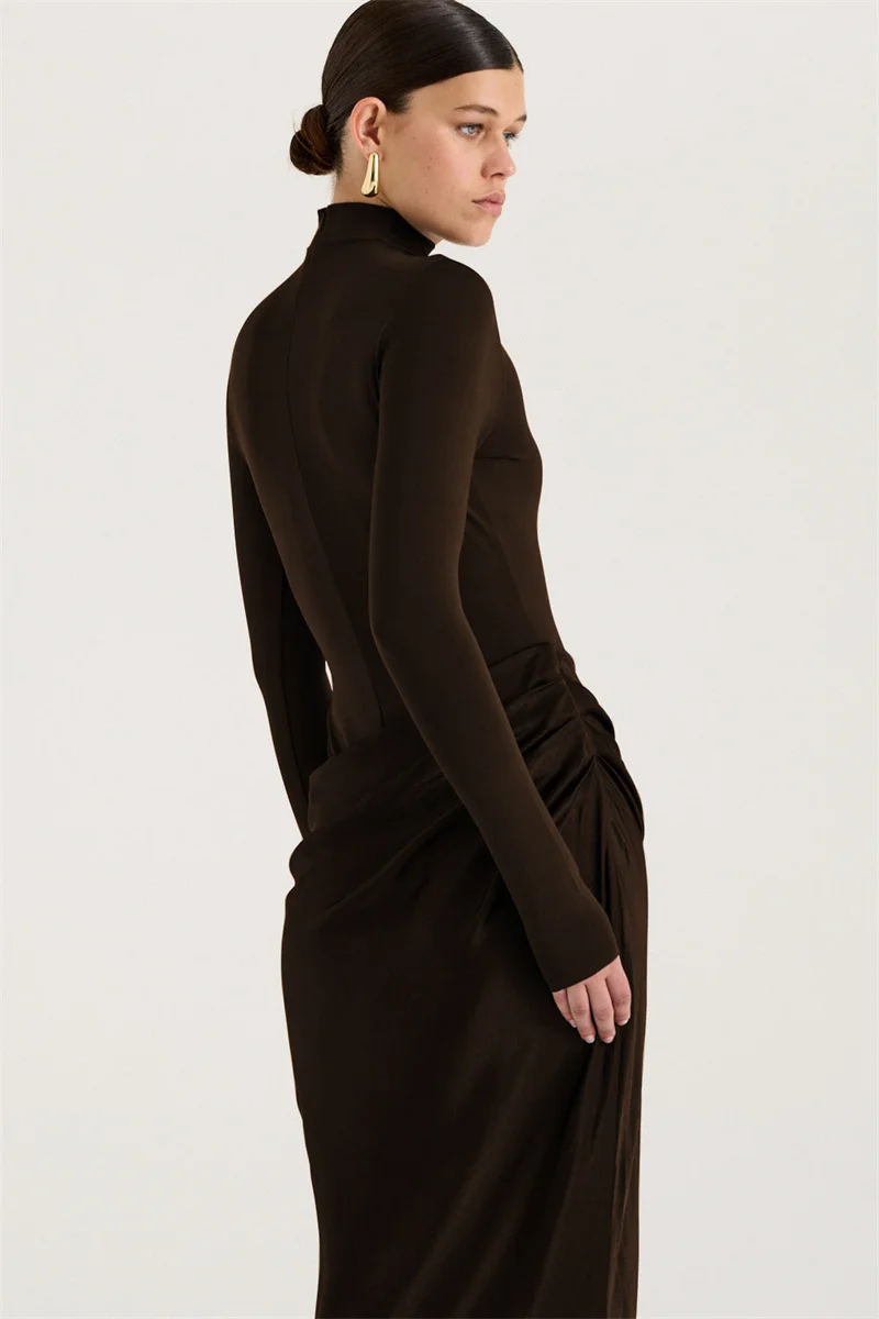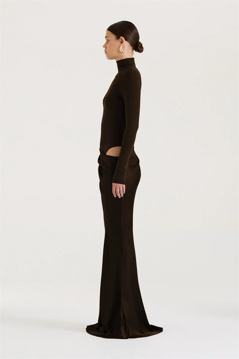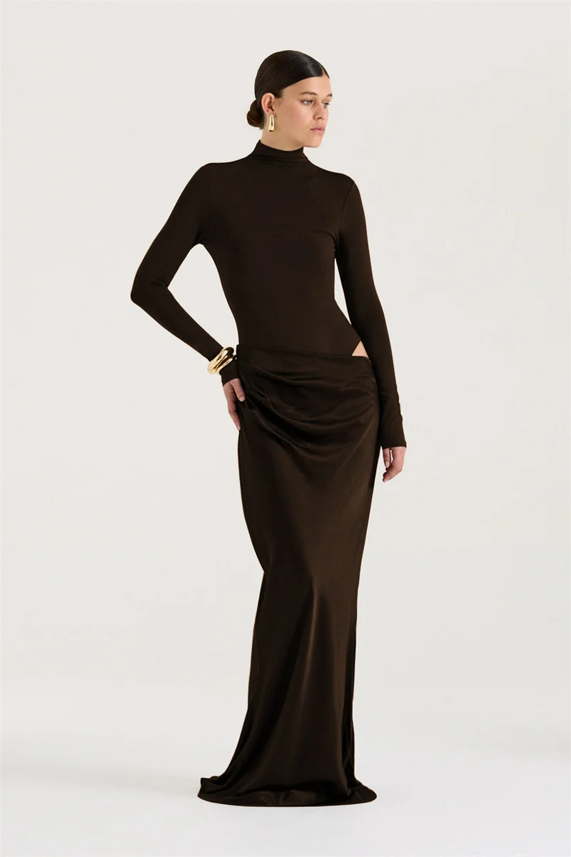 QueenLine Hollow Out Turtleneck Ruched Bodycon Long Sleeve Sexy Maxi Dress