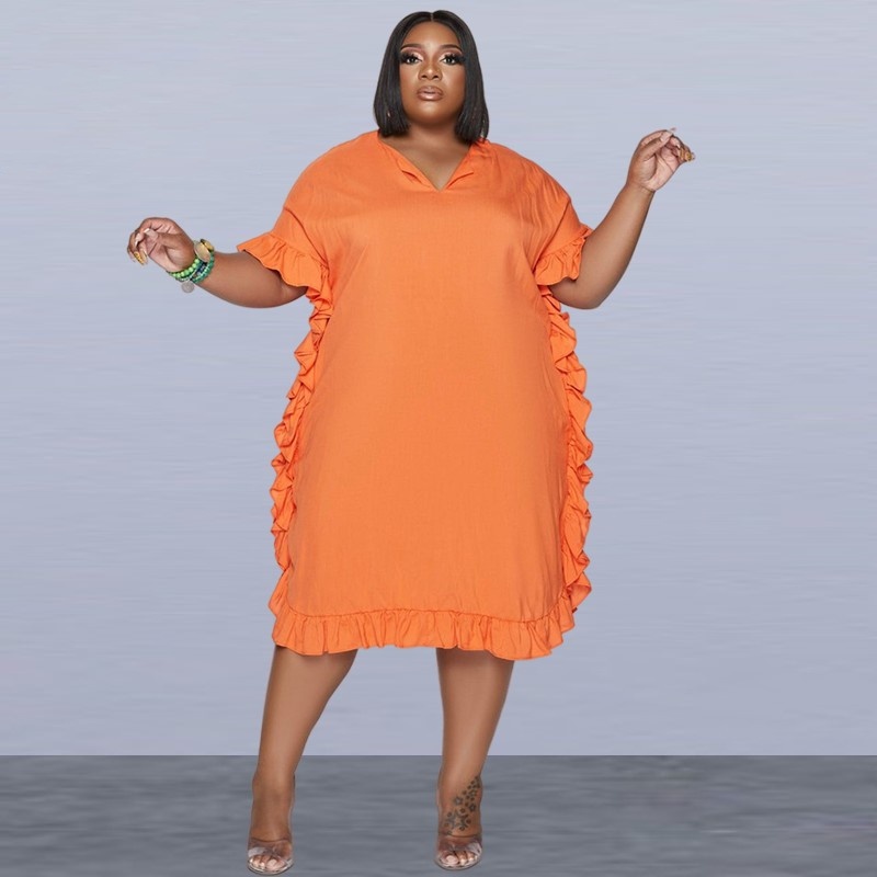 - Attributes: Plus Size V-neck Ruffled Short Sleeves