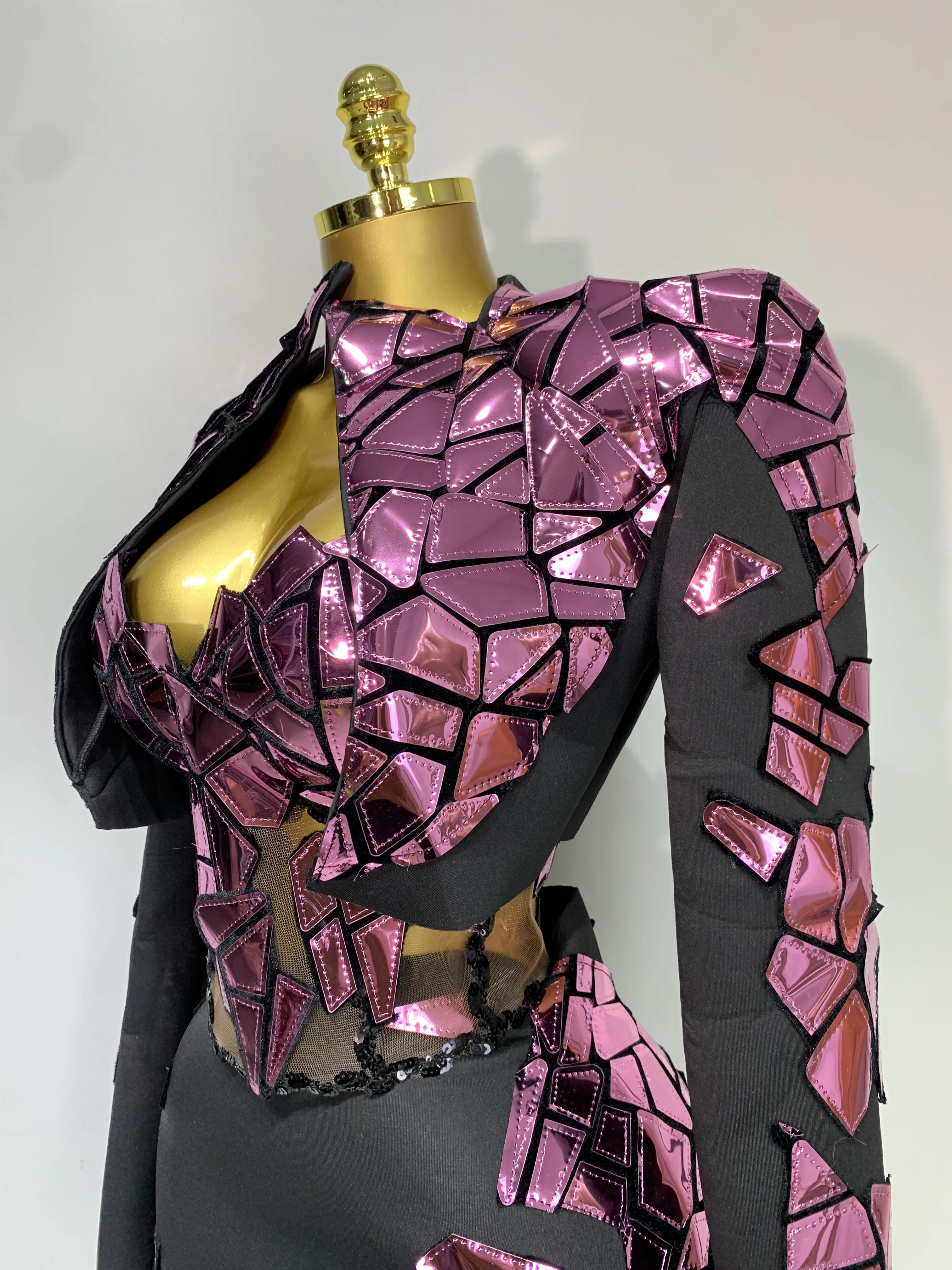 QueenLine Luxury Celebrity Long Sleeve Birthday Evening Costume Performance Dress