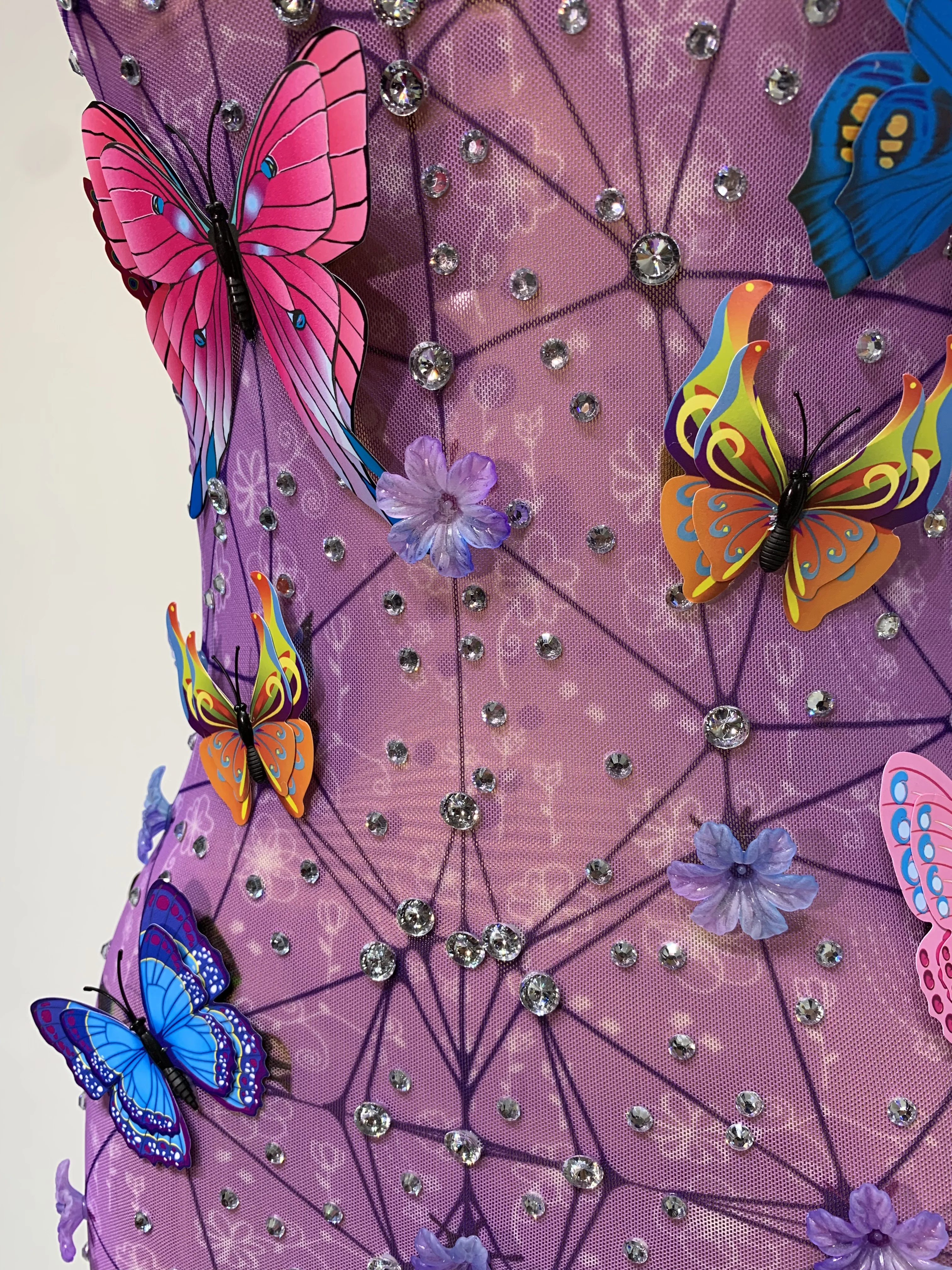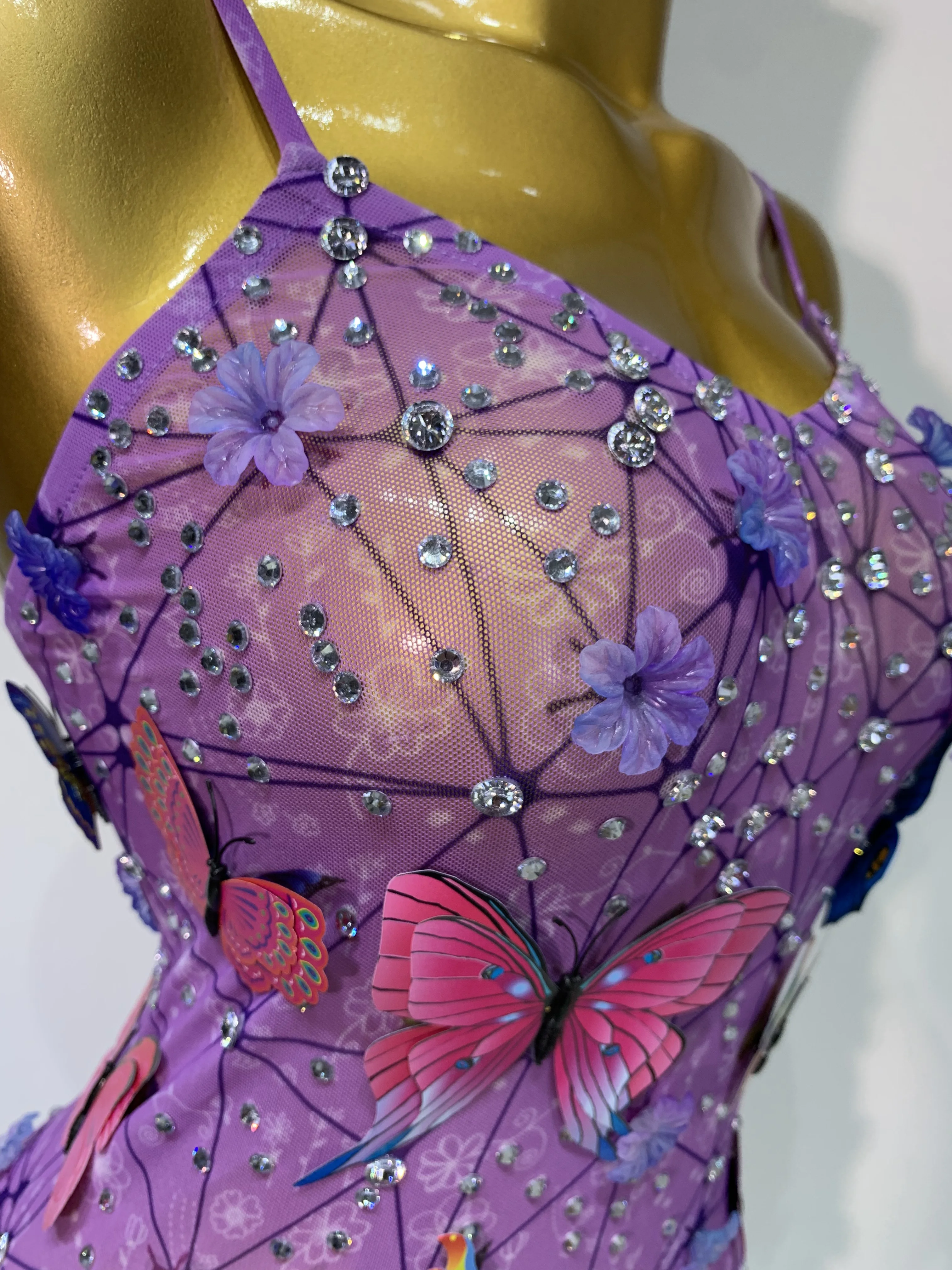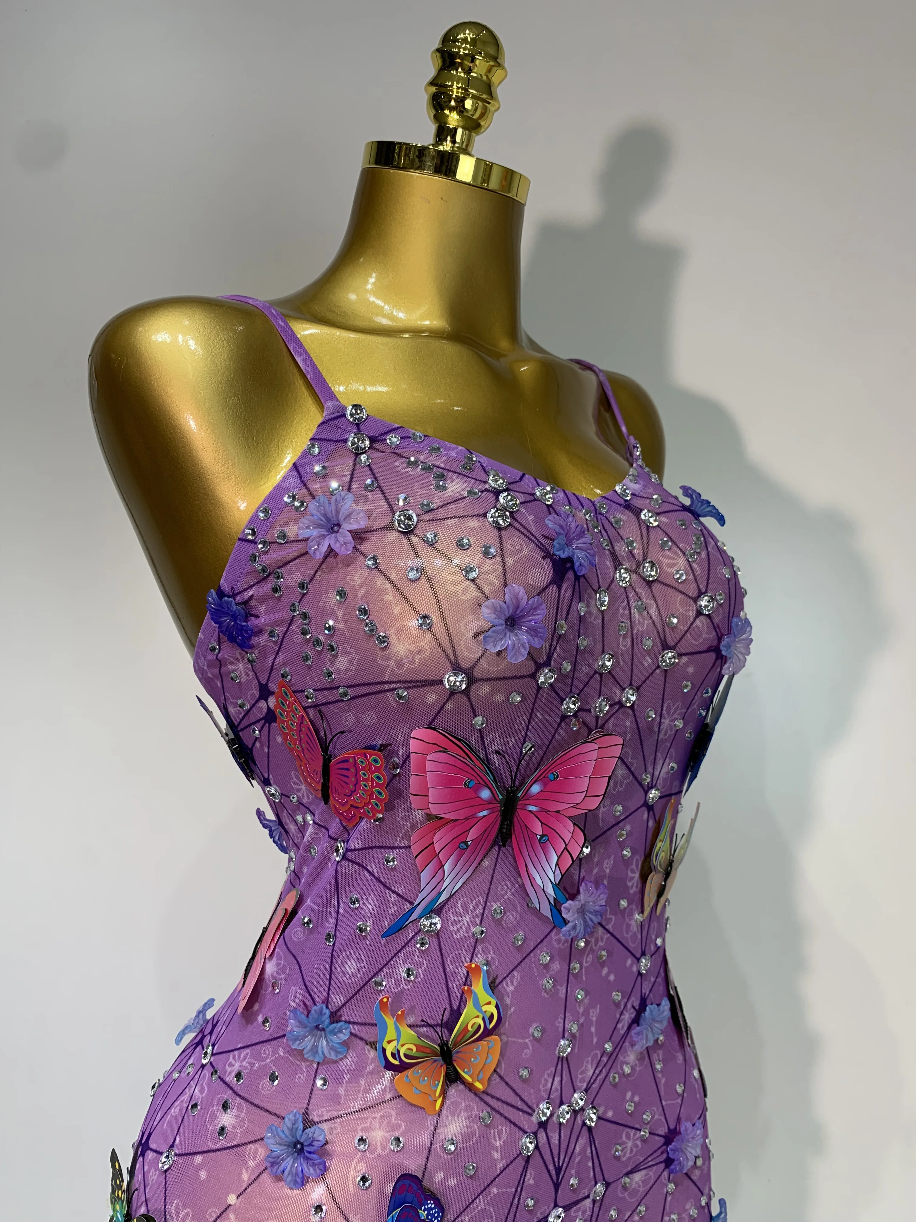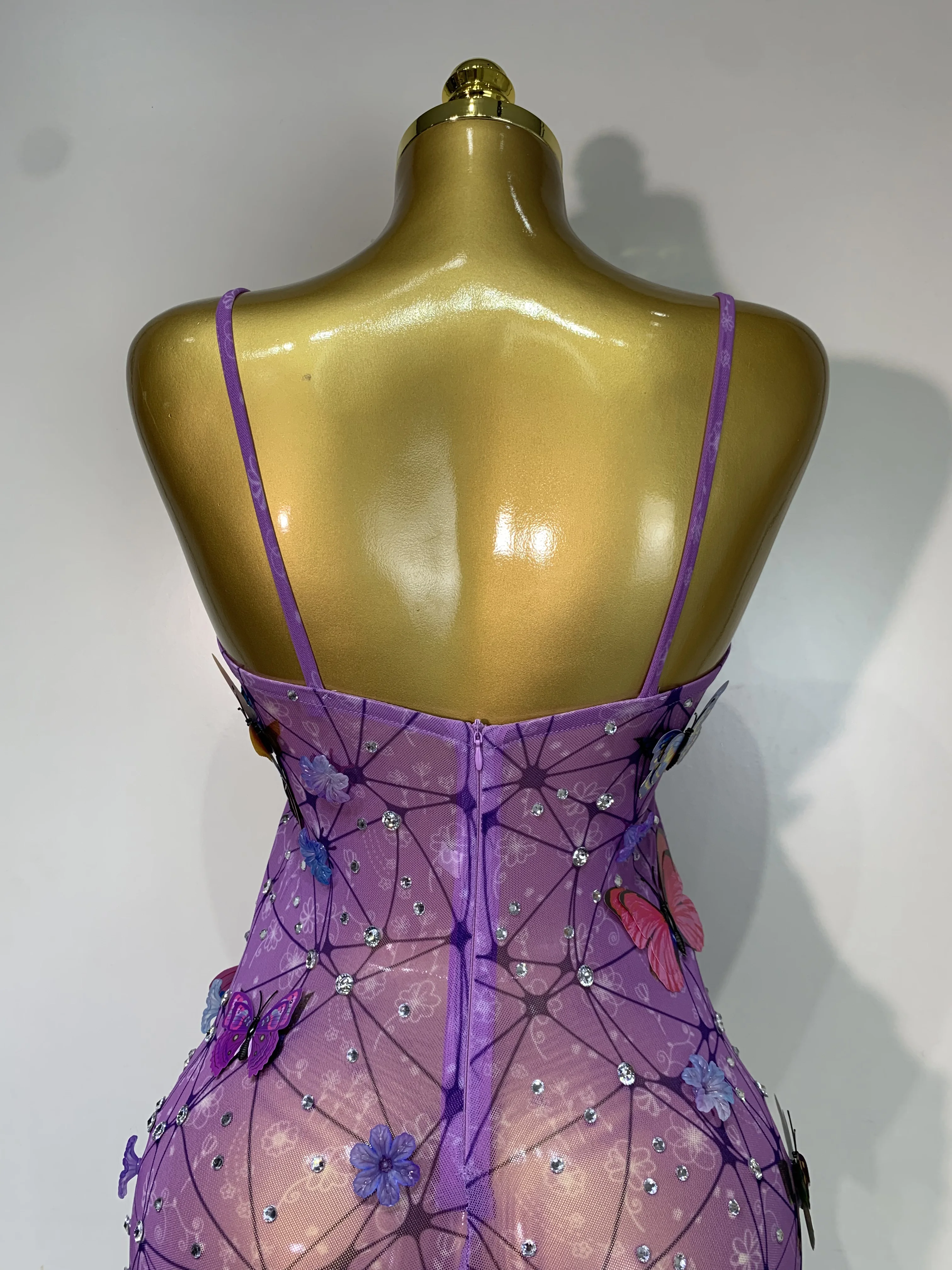 QueenLine Luxury Celebrity Sparkly Women Sexy Mesh See Through Butterfly Purple Birthday Dress