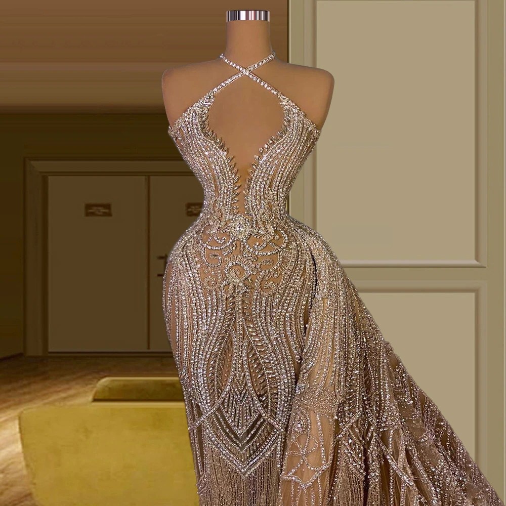 QueenLine Luxury Crystal Long Prom Dress Sparkly Mermaid EVening Dresses Dubai Saudi Vestido De Novia Birthday Party Wear