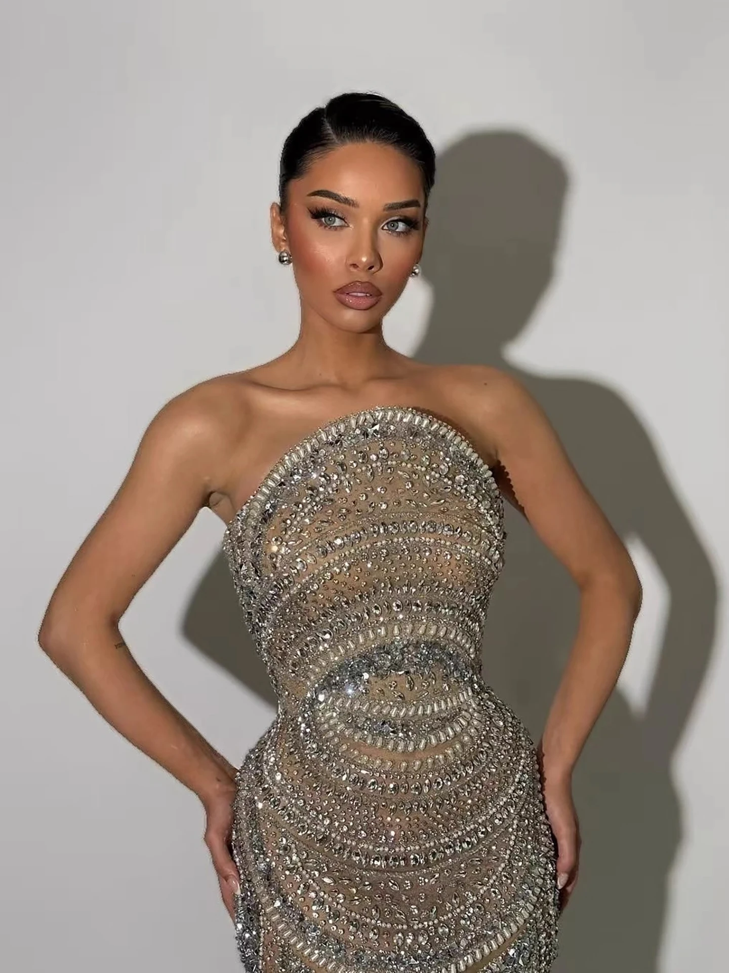 Exquisite Beading and Tulle Fabric:Crafted with exquisite beading and delicate tulle, the dress exudes elegance and grace.
