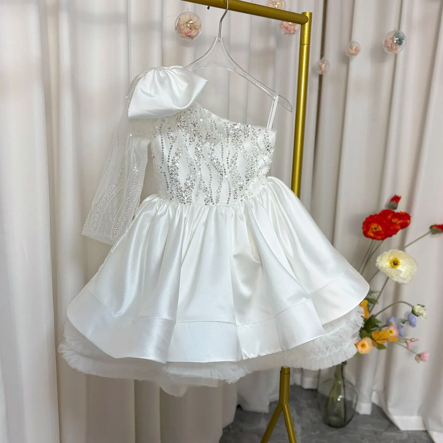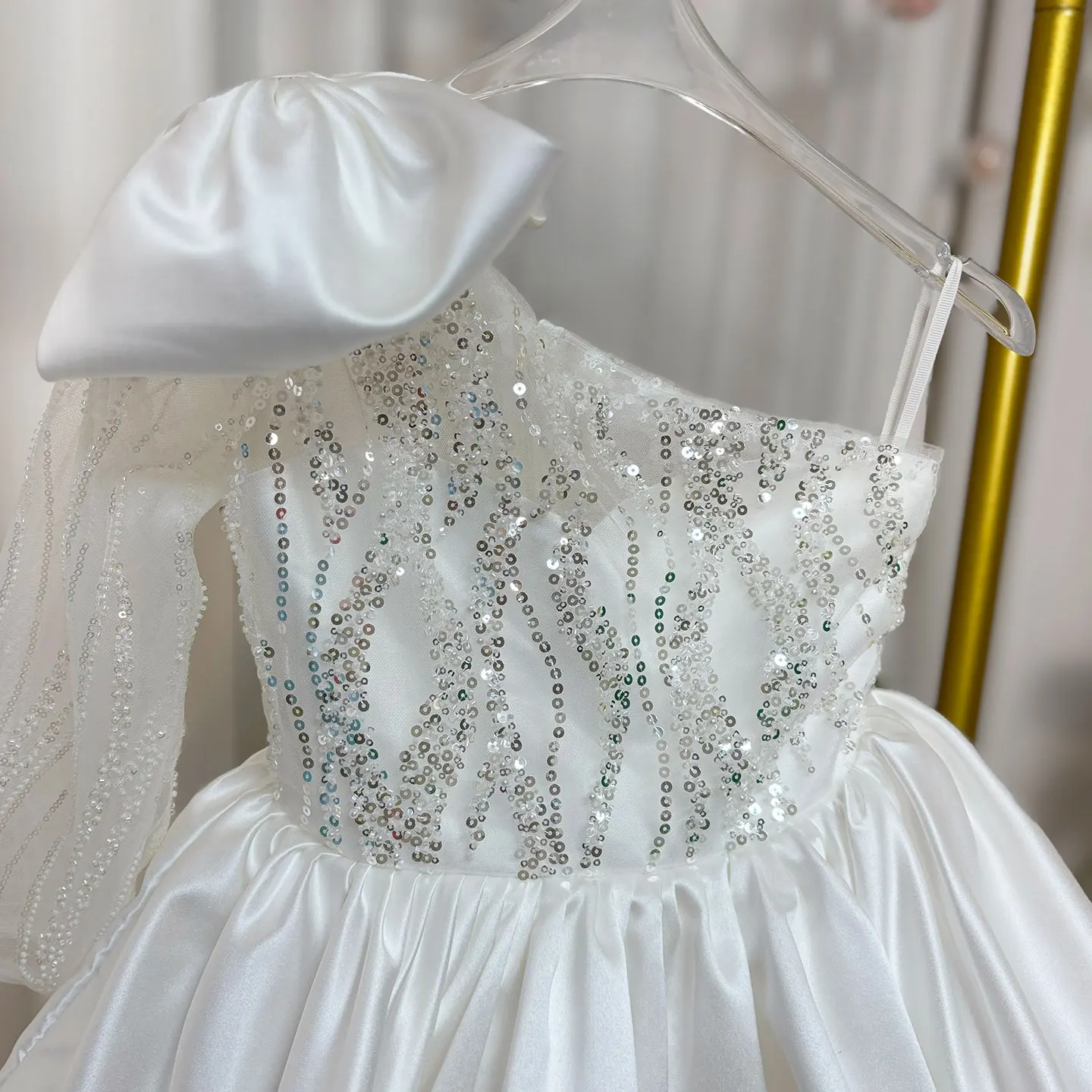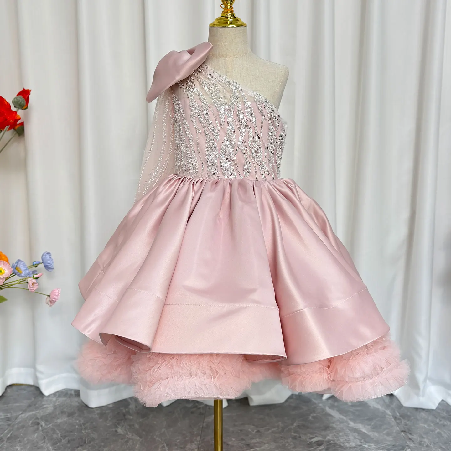 QueenLine Luxury Elegant Pink Flower Girl Bow Sequined Blue Princess Wedding Communion Dress
