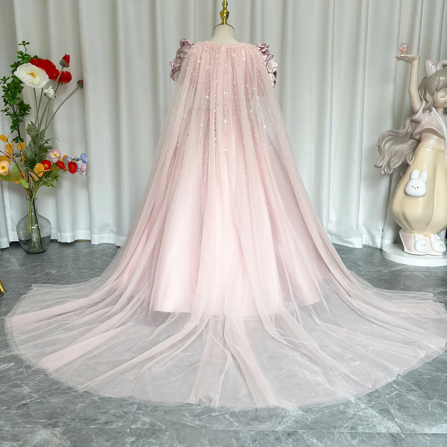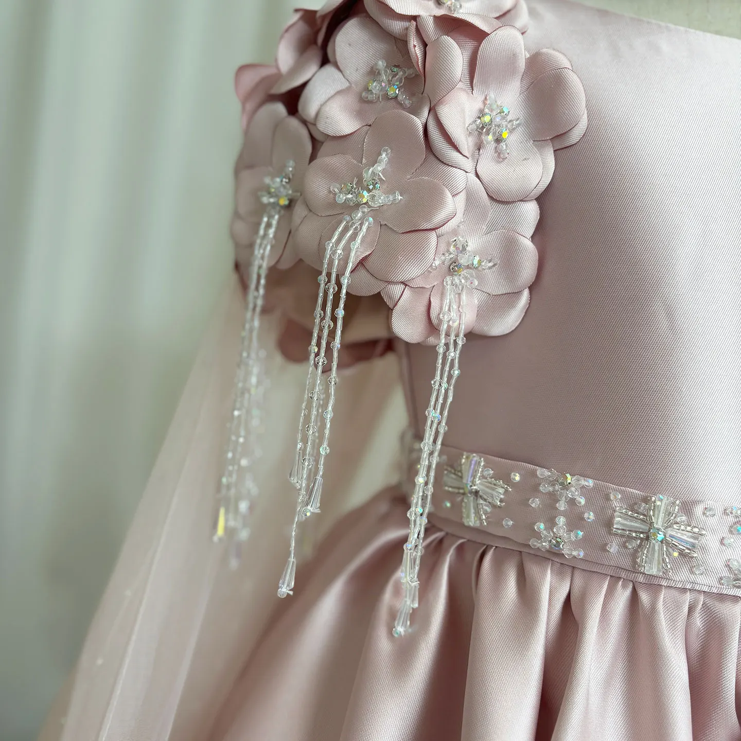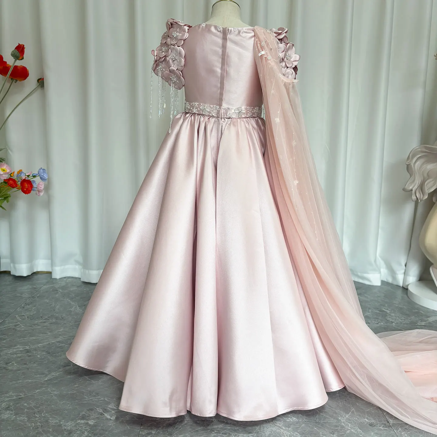 QueenLine Luxury Handmade Dusty Pink Girl Beadeds Arabic Flowers Princess Wedding Birthday Gown with Cap