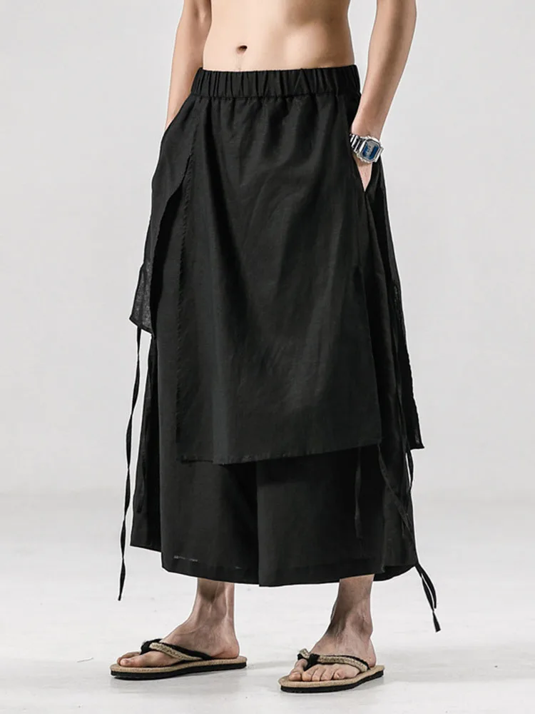 QueenLine Men's Linen Casual Jogging Trousers Elastic Waist Loose Irregular Culottes Street Style Harajuku Straight Wide Leg Pants