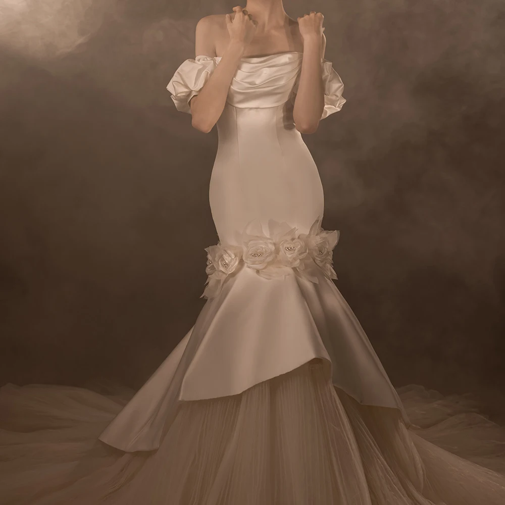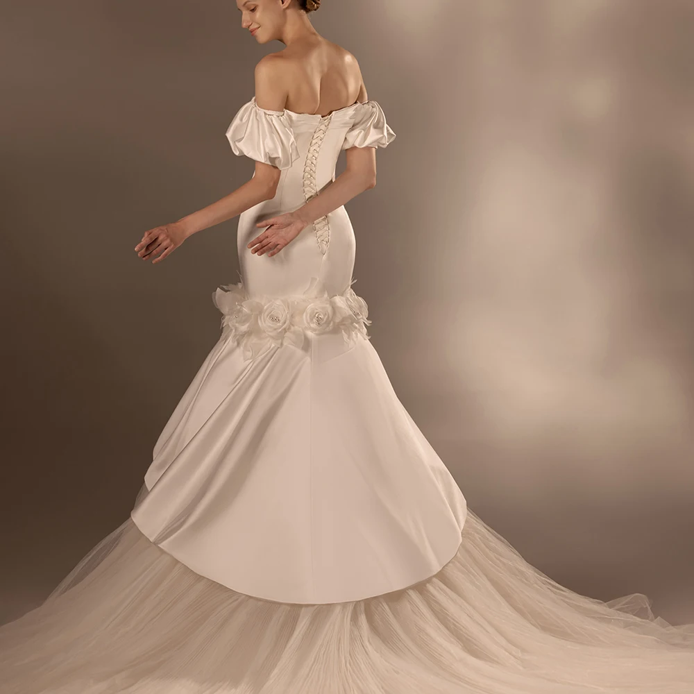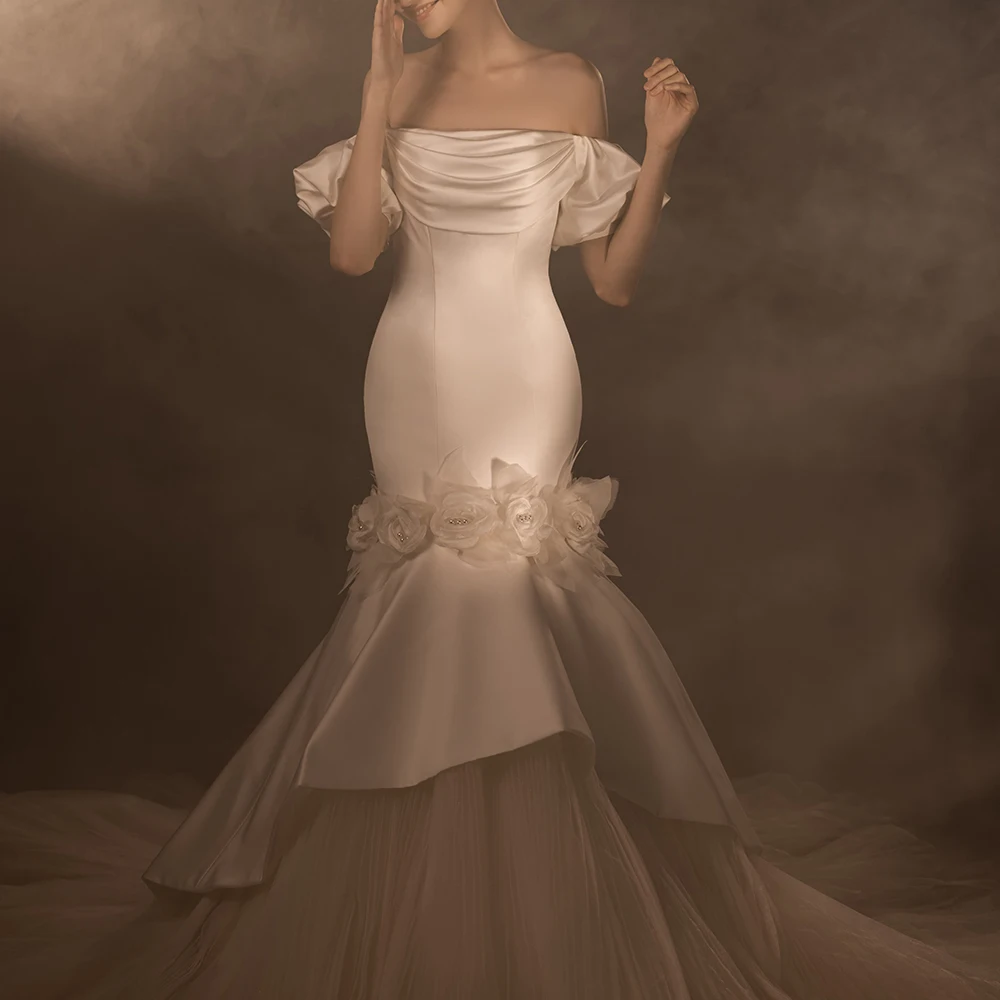 Jancember International First-rate Wedding Dresses For Women 2024 Bride Mermaid Satin Boat Neck Backless Robe Mariage LSMX053