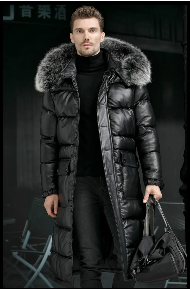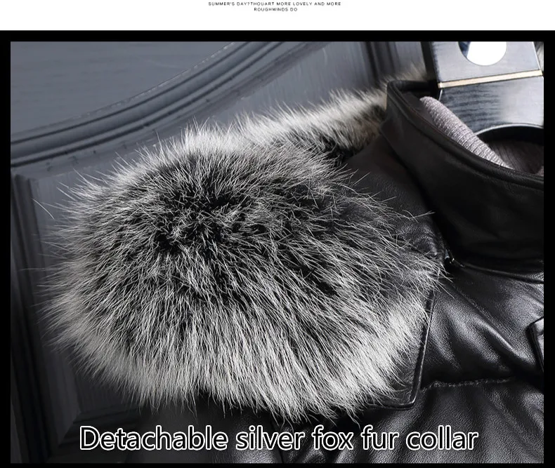 Head layer cowhide 580g white duck down detachable silver fox fur hooded