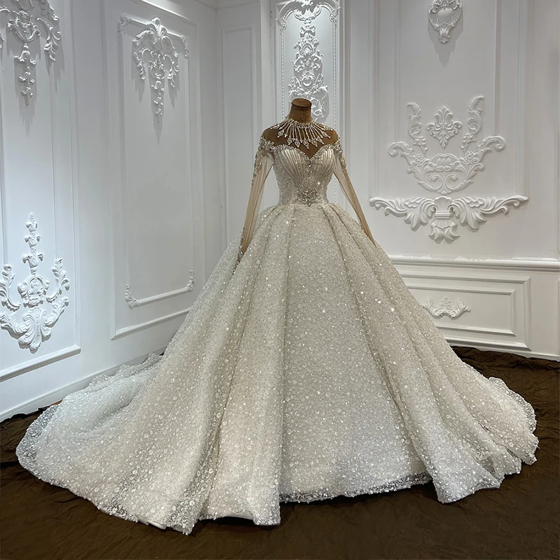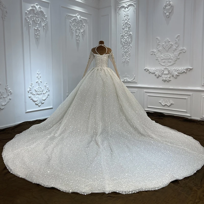 Jancember Modern Popular Design Wedding Dress 2024 Organza Backless Full Sleeves Pleat Crystal Lace Up Vestido De Noiva LSCJ07