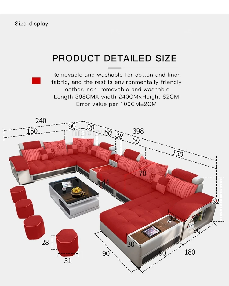 D.The surface of the sofa is made of waterproof, antifouling and mildew resistant technical cloth, which is easy to clean.