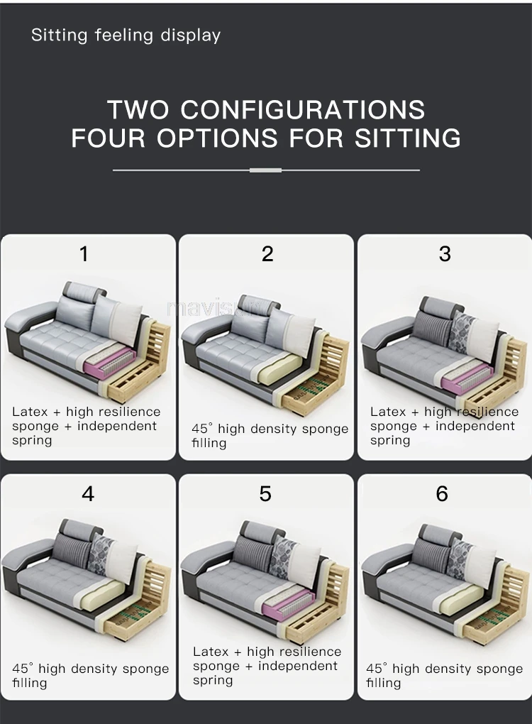 Sofa filling: 2cm latex cushion +45D high resilience sponge