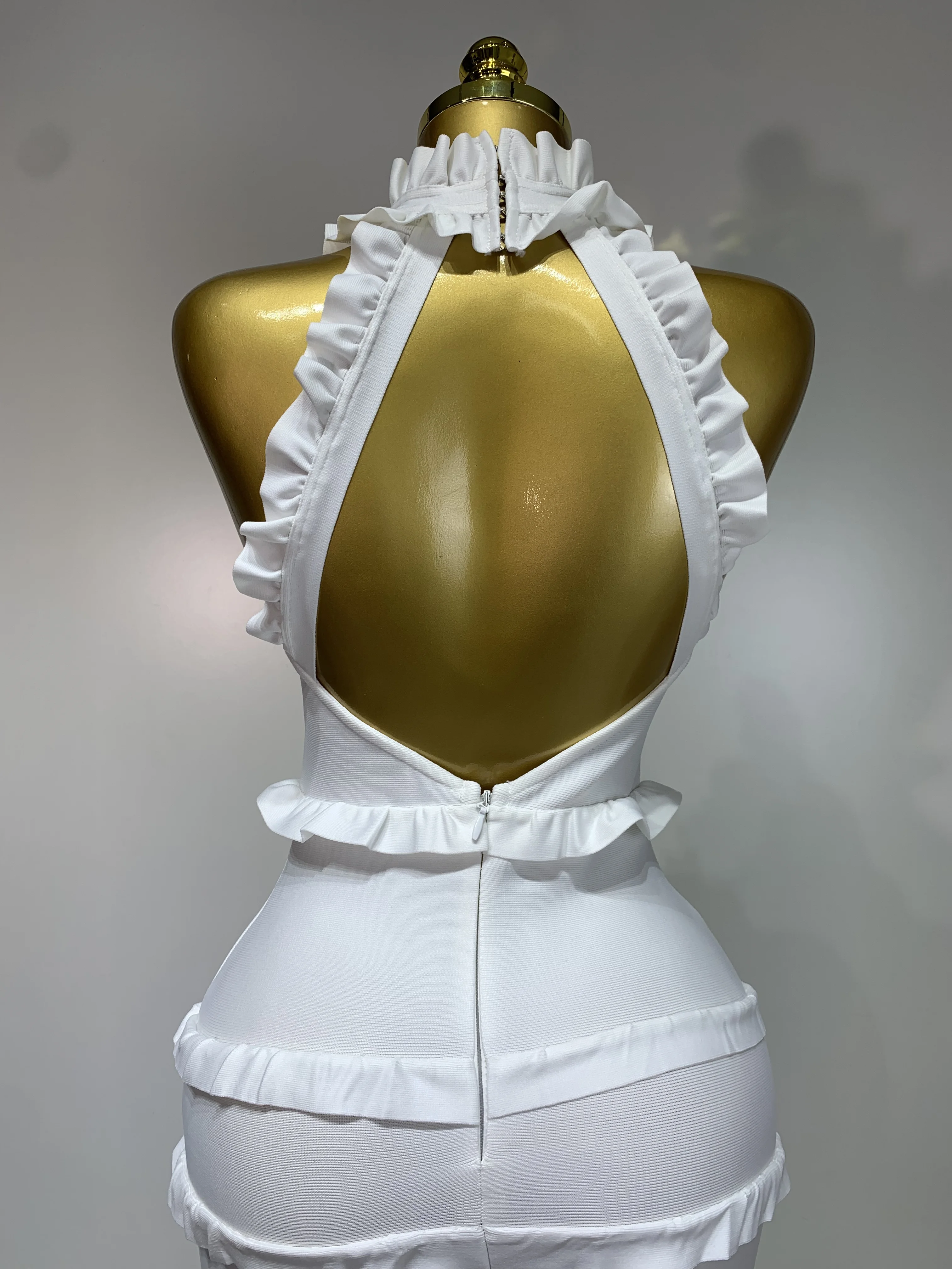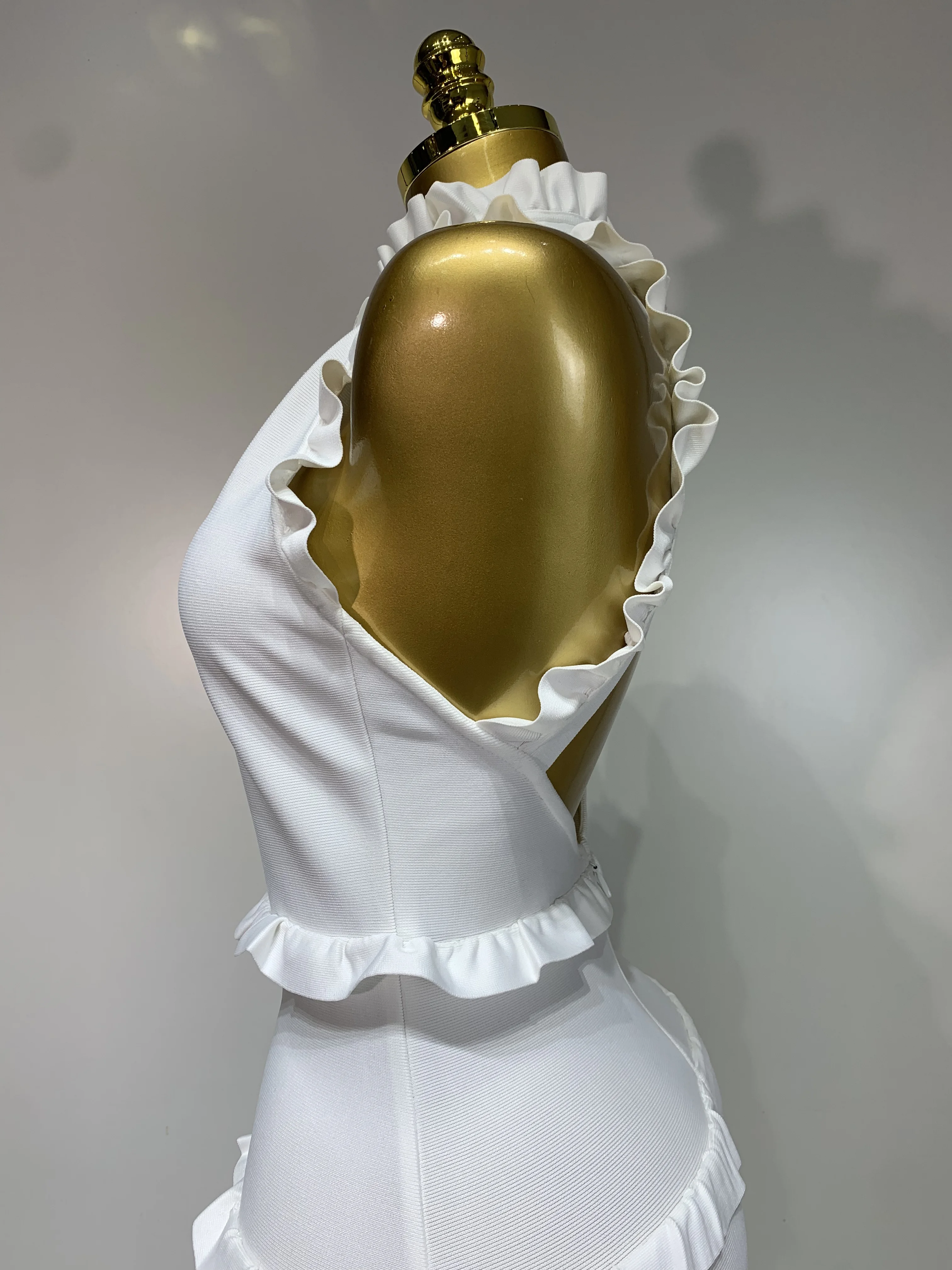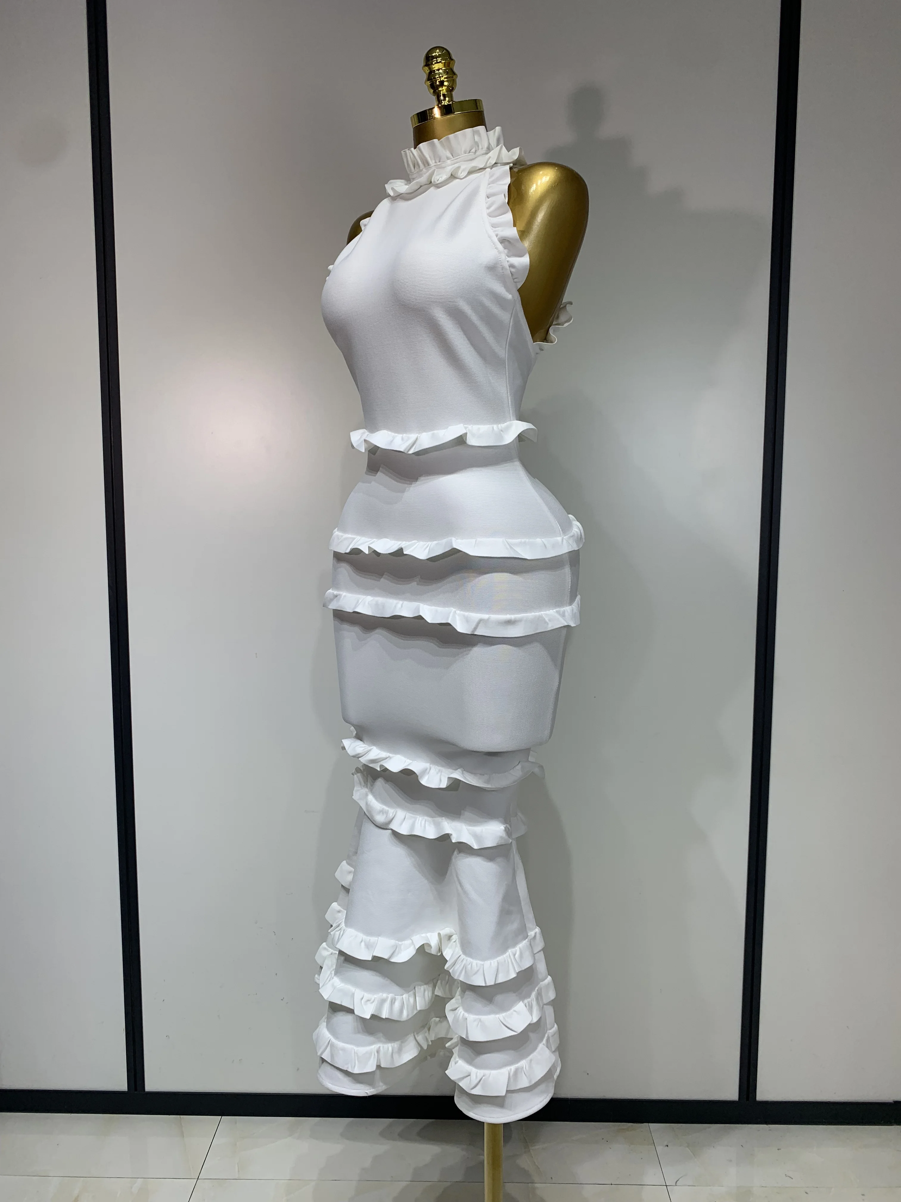 QueenLine New High quality White Elagant Retro Ruched High Collar Bodycon Bandage Evening Dress