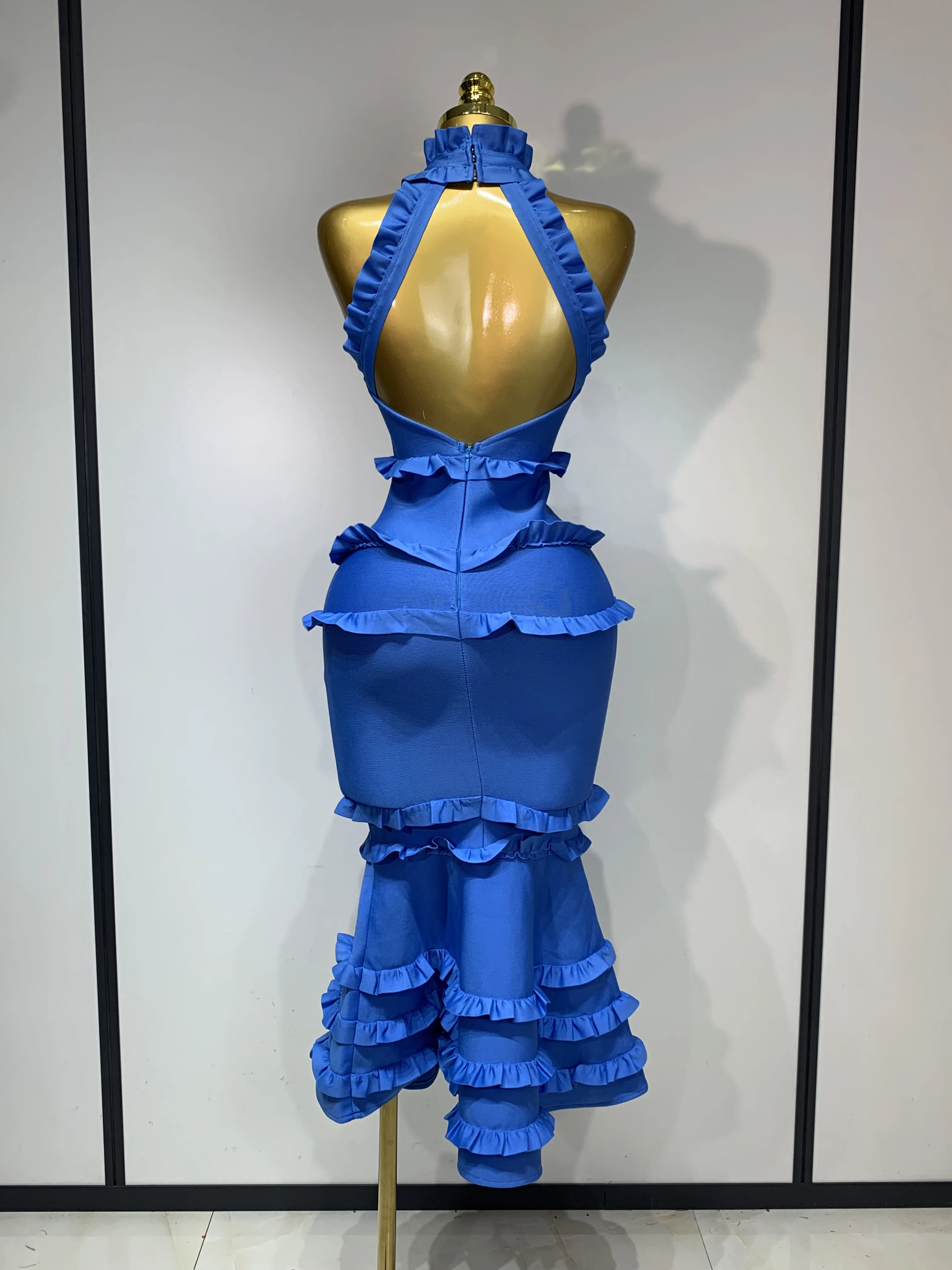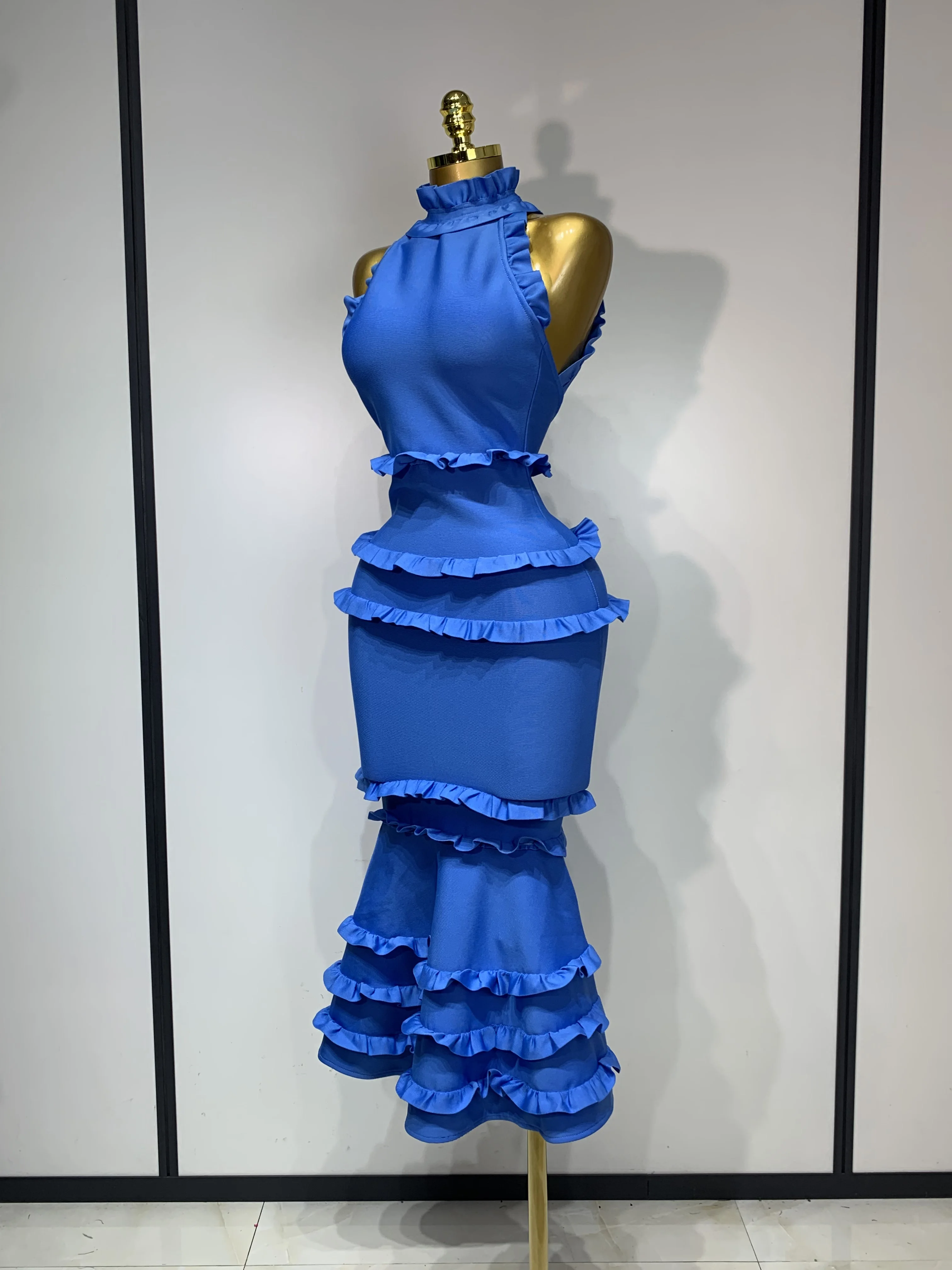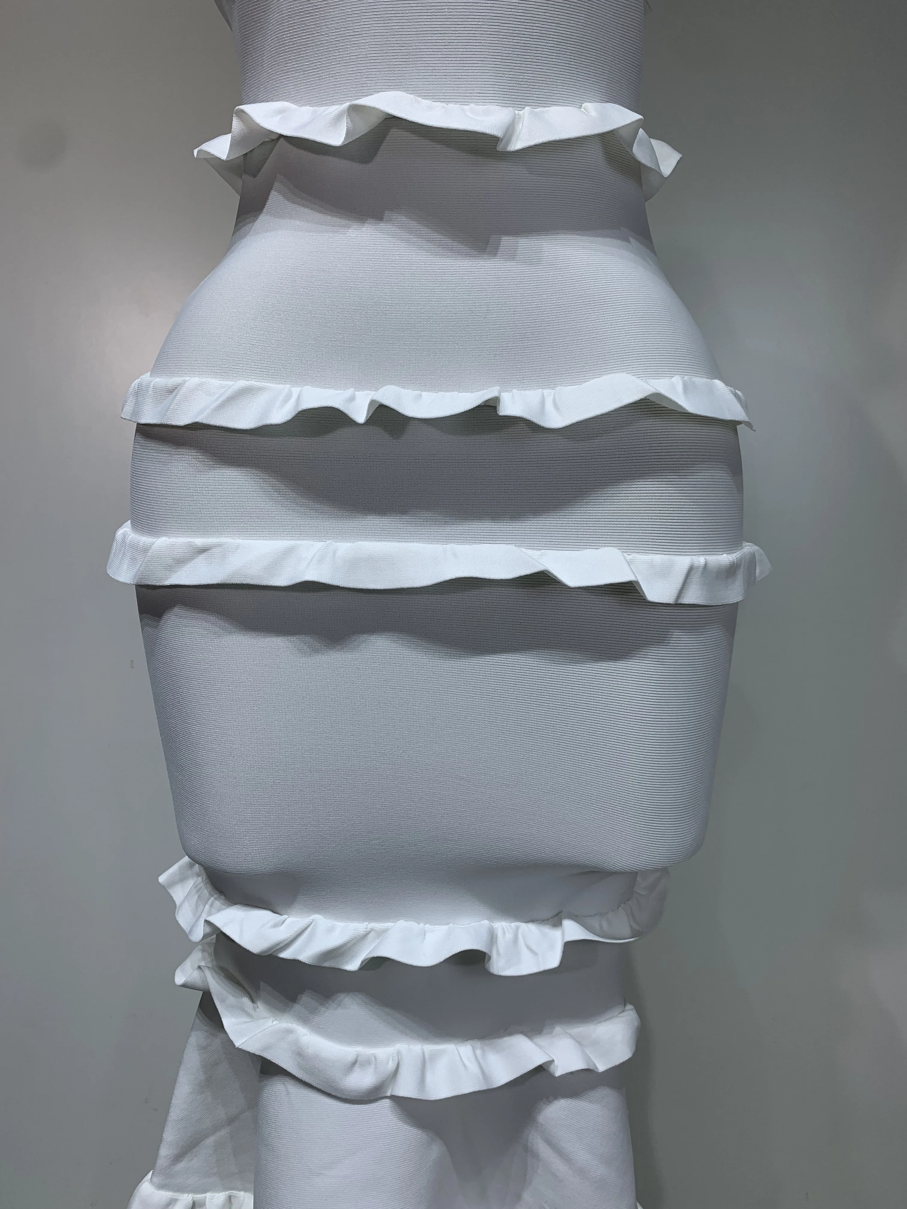 QueenLine New High quality White Elagant Retro Ruched High Collar Bodycon Bandage Evening Dress