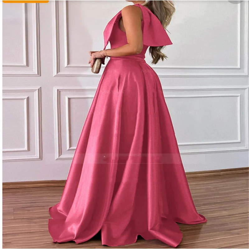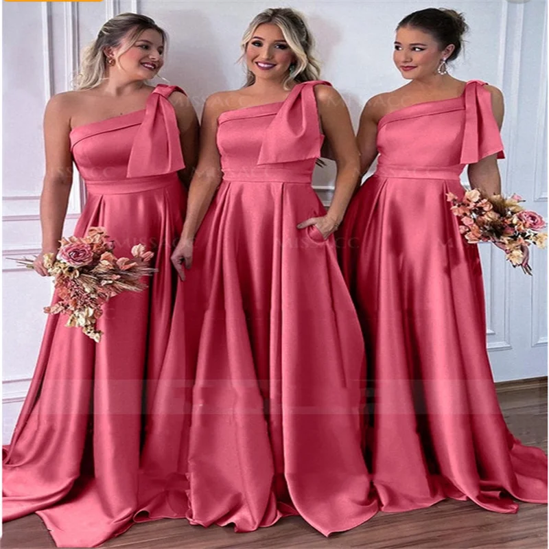 QueenLine One Shoulder Elegant Bridesmaid Watermelon Red A Line Long Floor Evening Dress