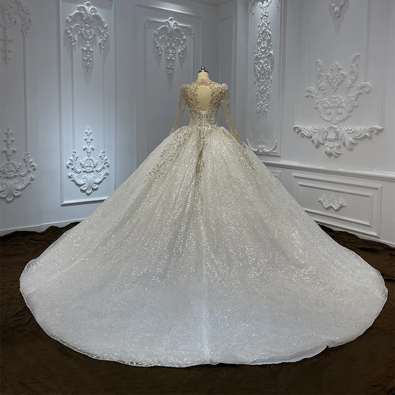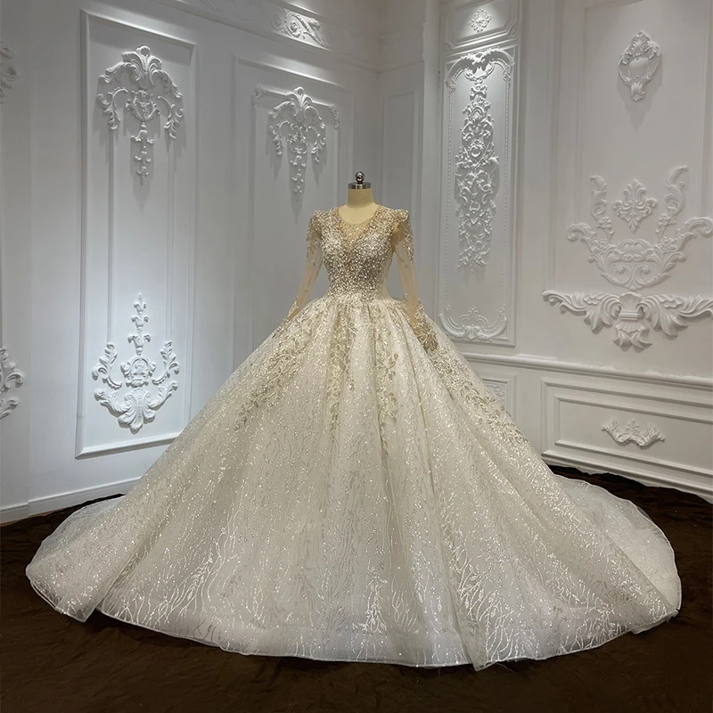 Jancember First-rate Brand New Wedding Dress 2024 Organza Full Sleeves Beading Lace Up Pleat Backless vestito da sposa LSCJ04