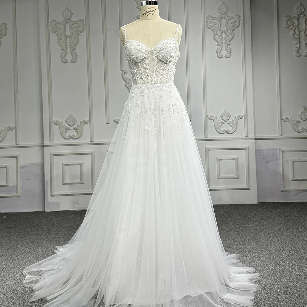 Jancember Superfine Surprise Price Wedding Dresses Organza Spaghetti Straps A-line Beading Zipper Vestidos De Novia DY6722
