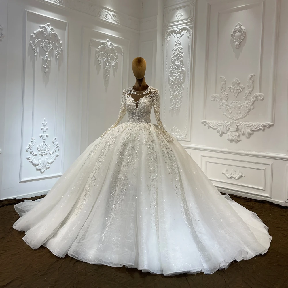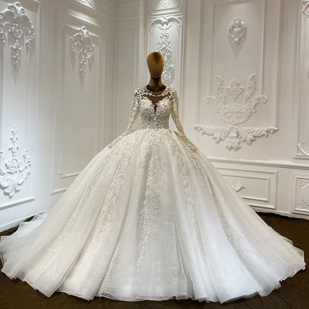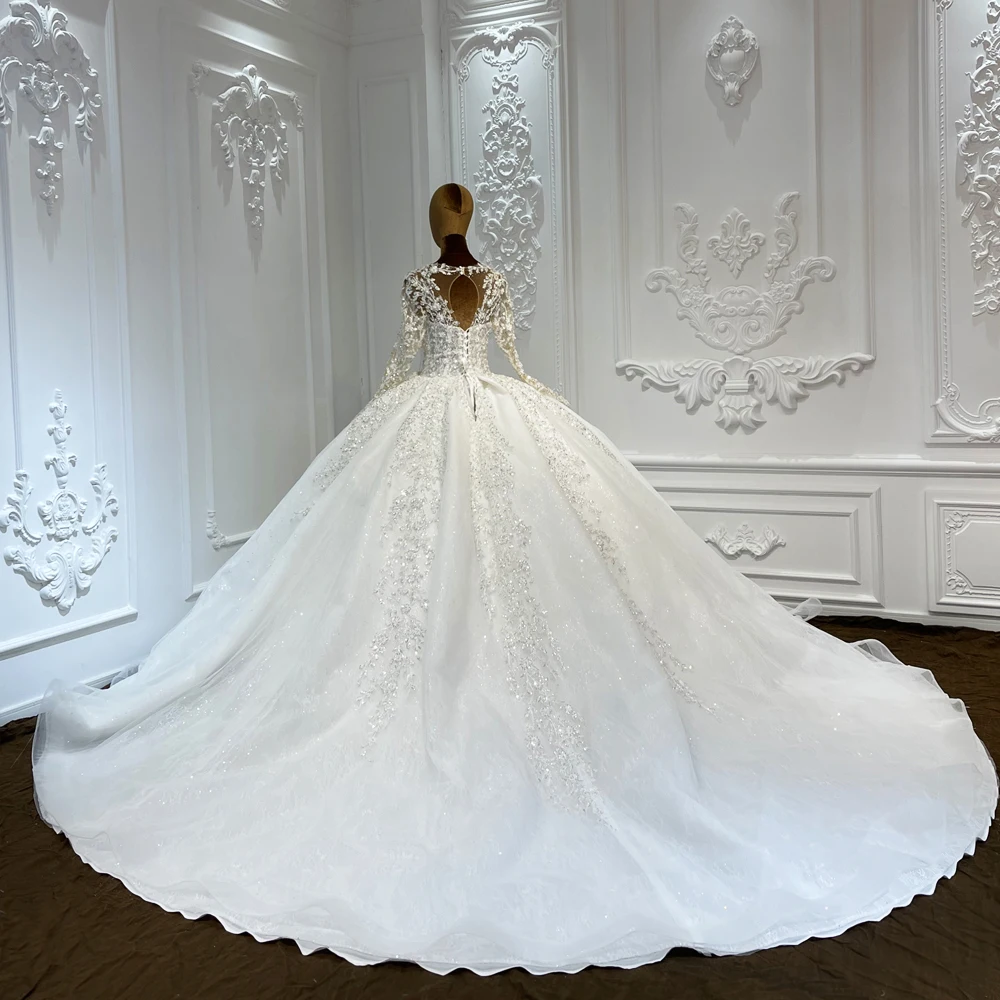 Jancember Princess Factory Wholesale Dresses For Women 2024 Organza Ball Gown Full Sleeves Embroidery Robe De Mariée LSCJ11