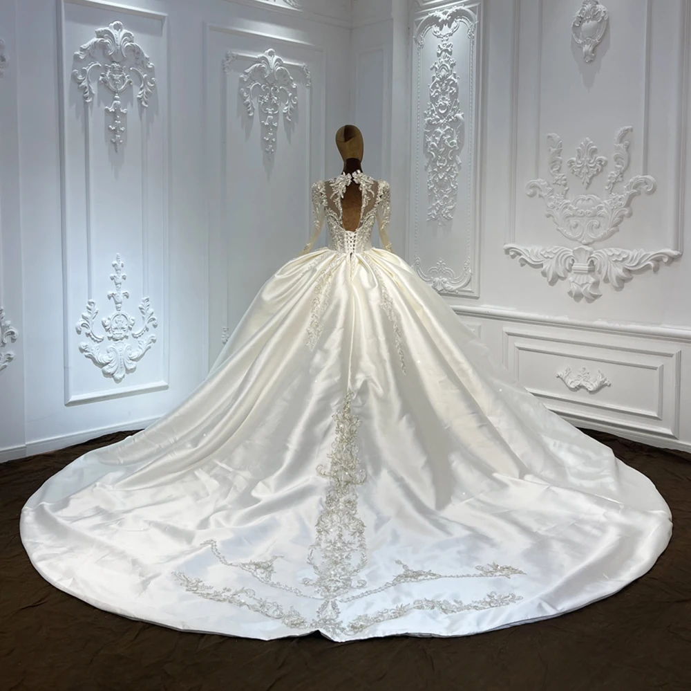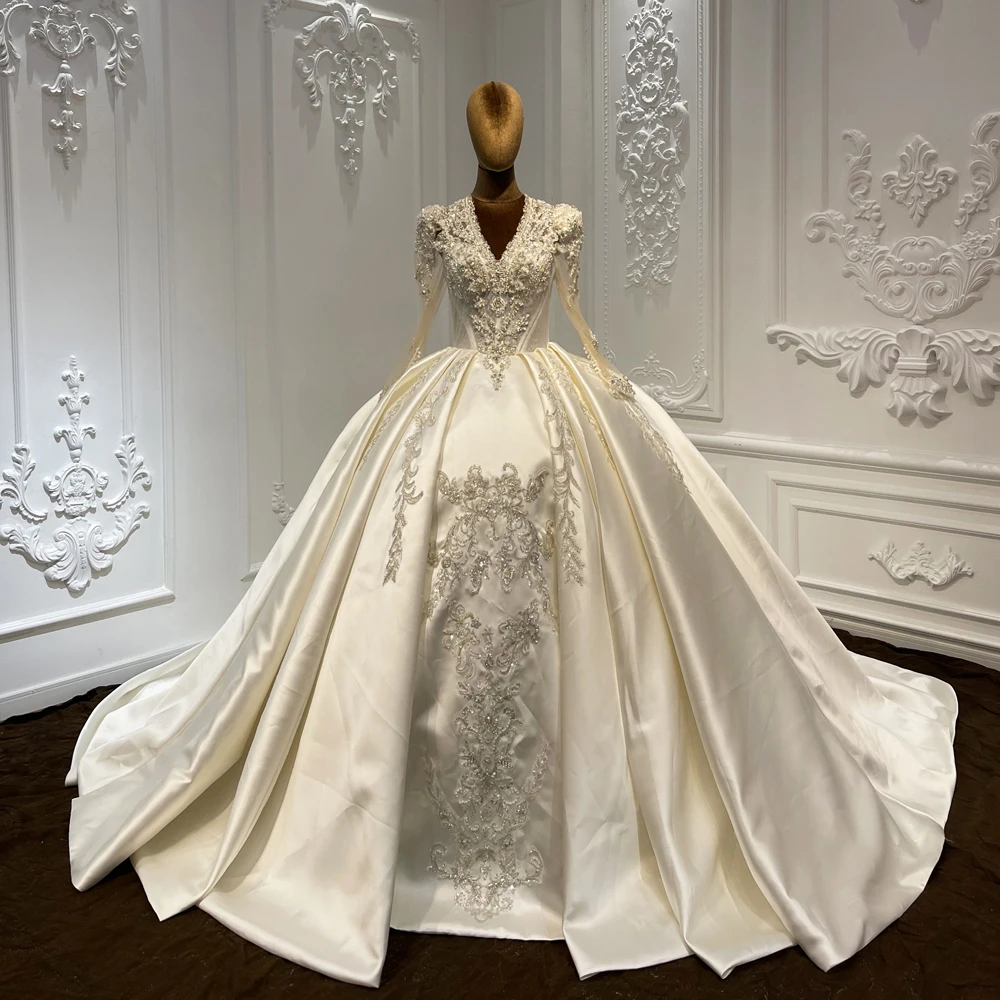 Jancember Romantic Factory Wholesale Wedding Dresses For Women Ball Gown V-neck Full Sleeves Beading Backless Vestidos De Novia