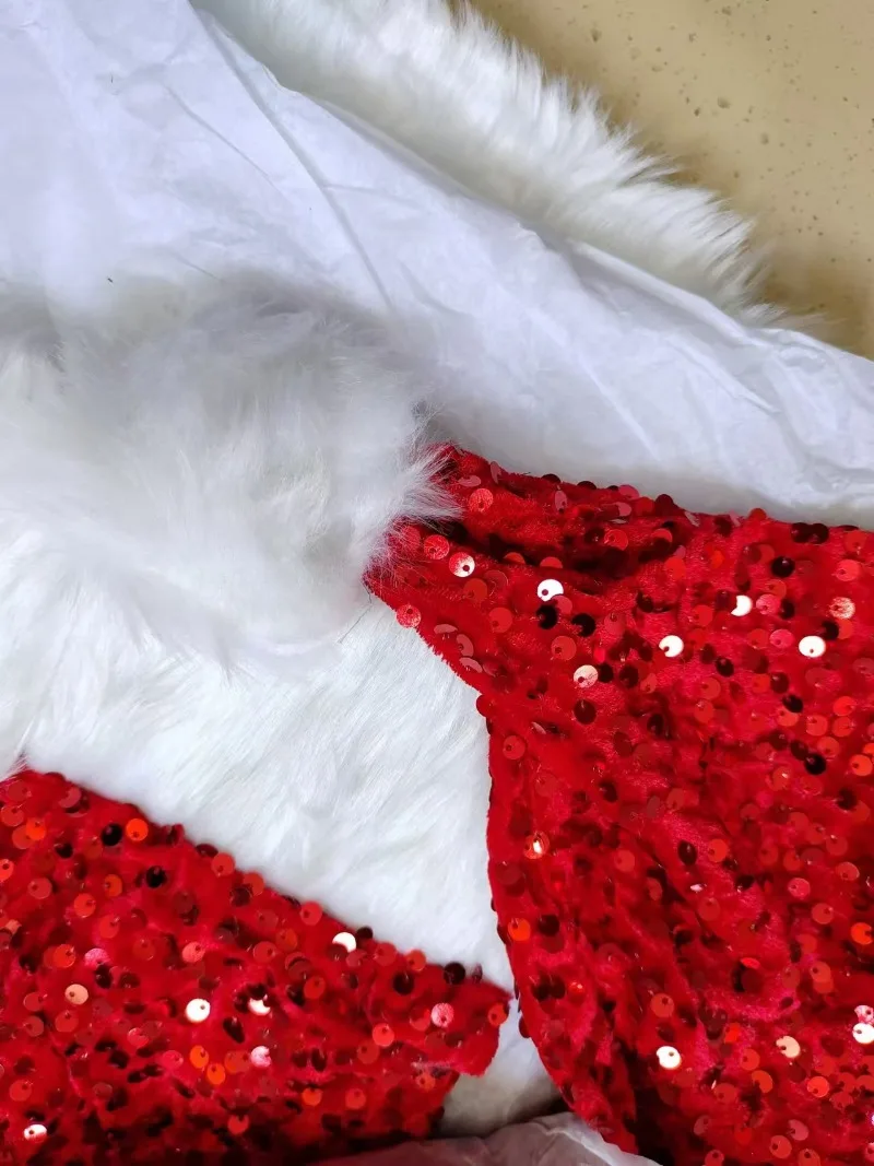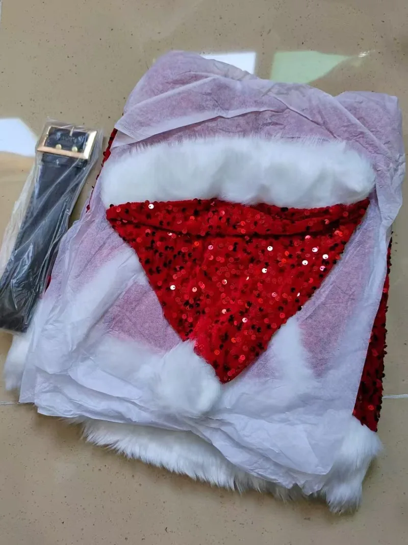 QueenLine Santa Mrs Claus Cosplay Christmas V-Neck Furry Fancy Hooded Performance Nightwear Costume