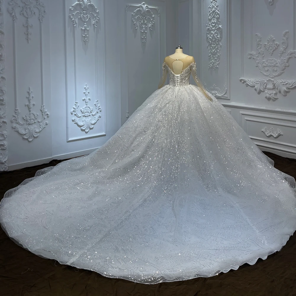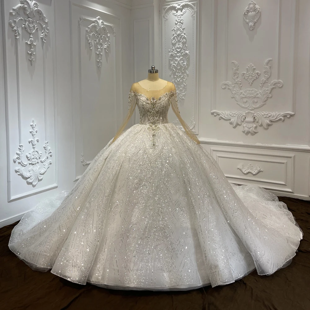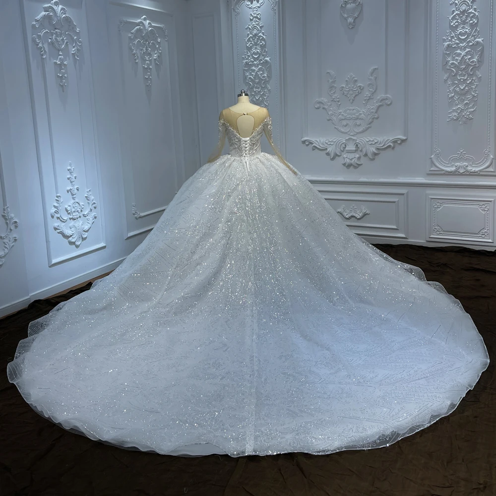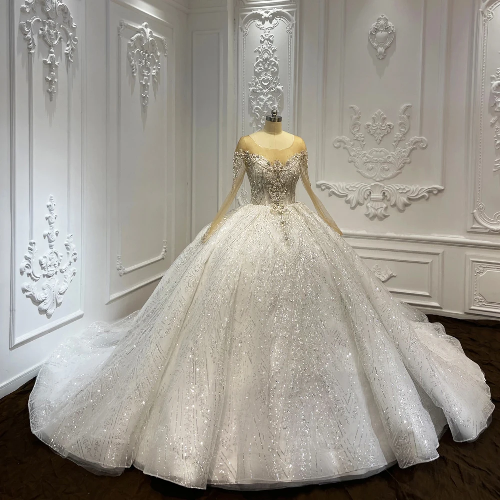 Jancember Promotion wholesale Wedding Dress 2024 Ball Gown Sequins Full Sleeves Illusion Beading Vestido De Novia LSCJ17