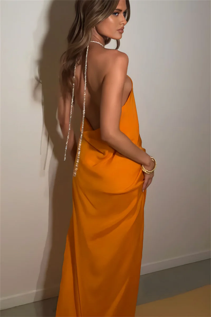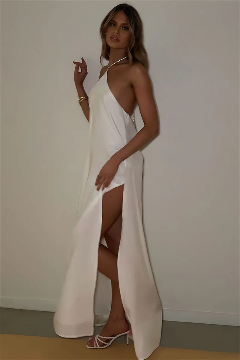 QueenLine Sequins Halter Backless Sexy Off-shoulder Sleeveless Thigh High Split Long Maxi Dress