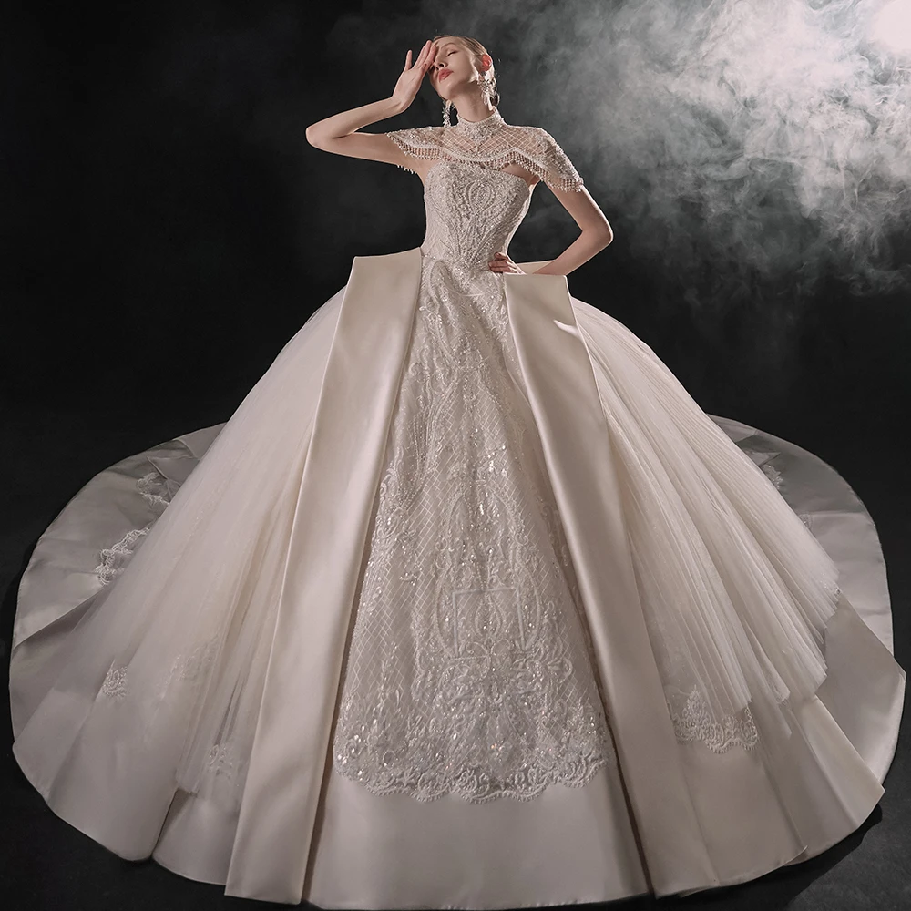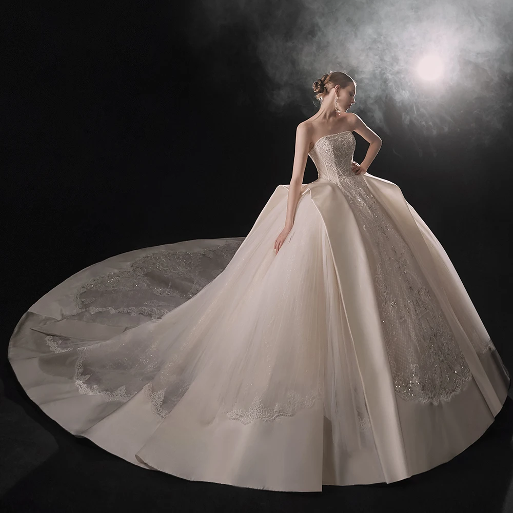 Jancember First-rate Classic Wedding Gown For Bride 2024 Ball Gown Strapless Chapel Train Sequins Lace Up vestidos novias boda