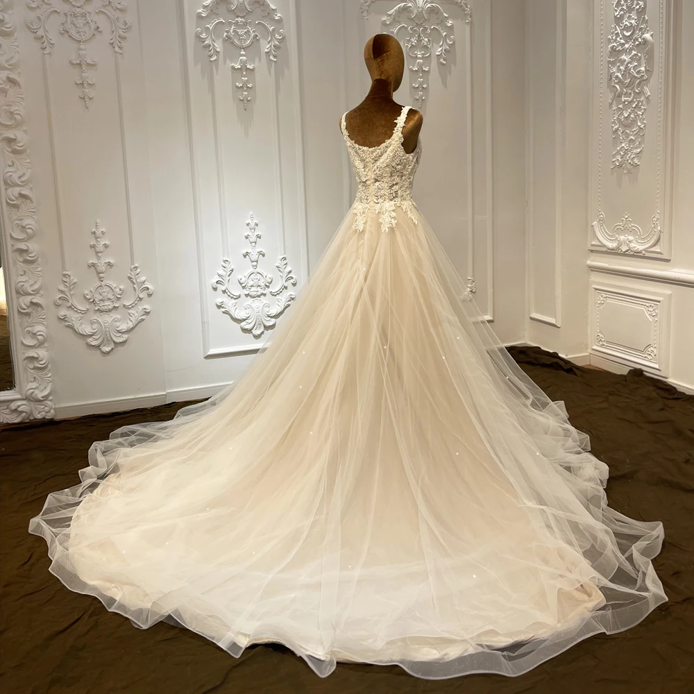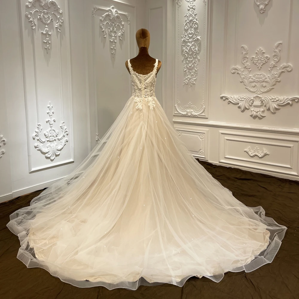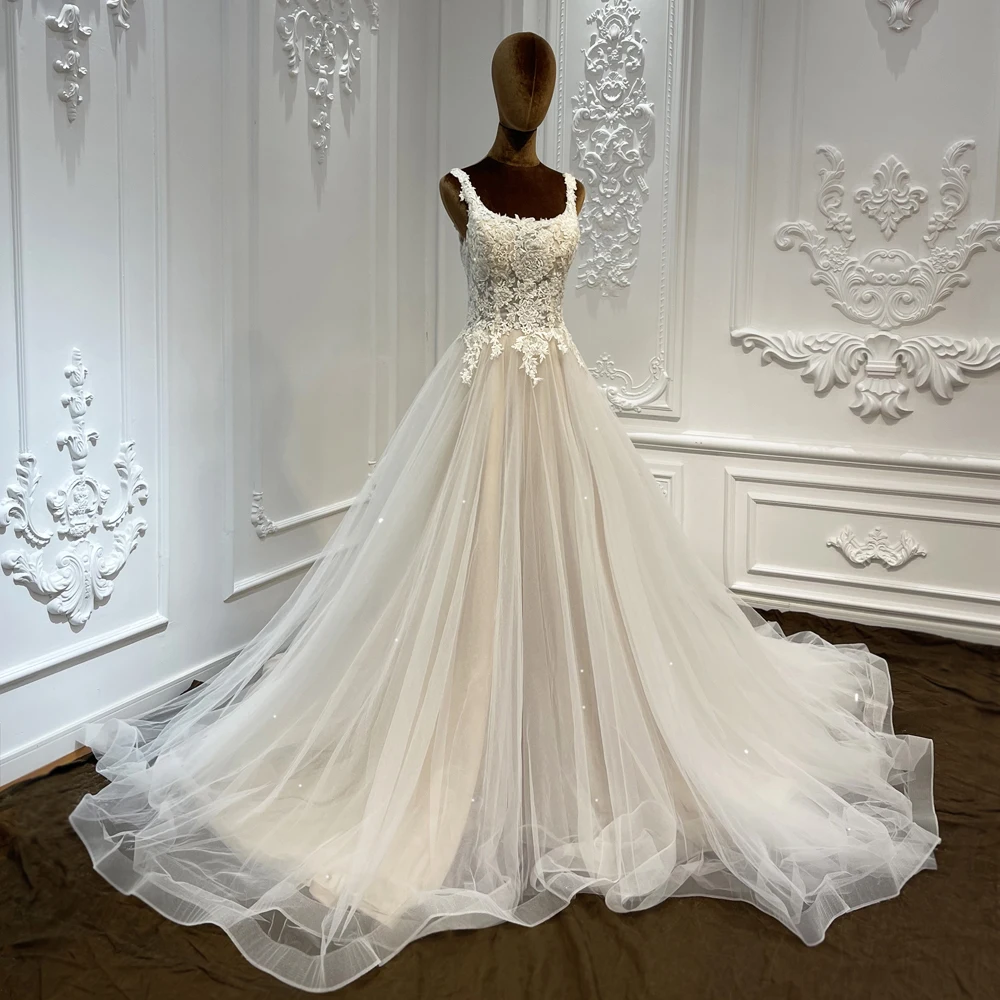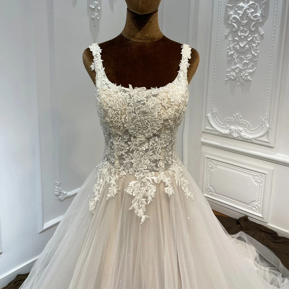 Jancember Stylish Factory Wholesale Wedding Dresses For Women A-line Square Collar Spaghetti Straps Zipper Vestido Noiva LSCJ19