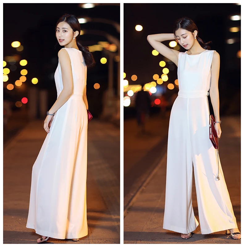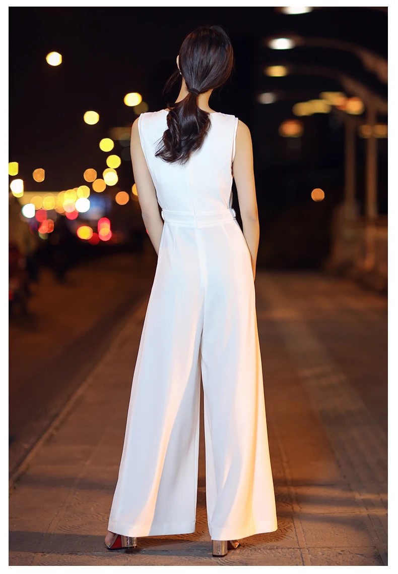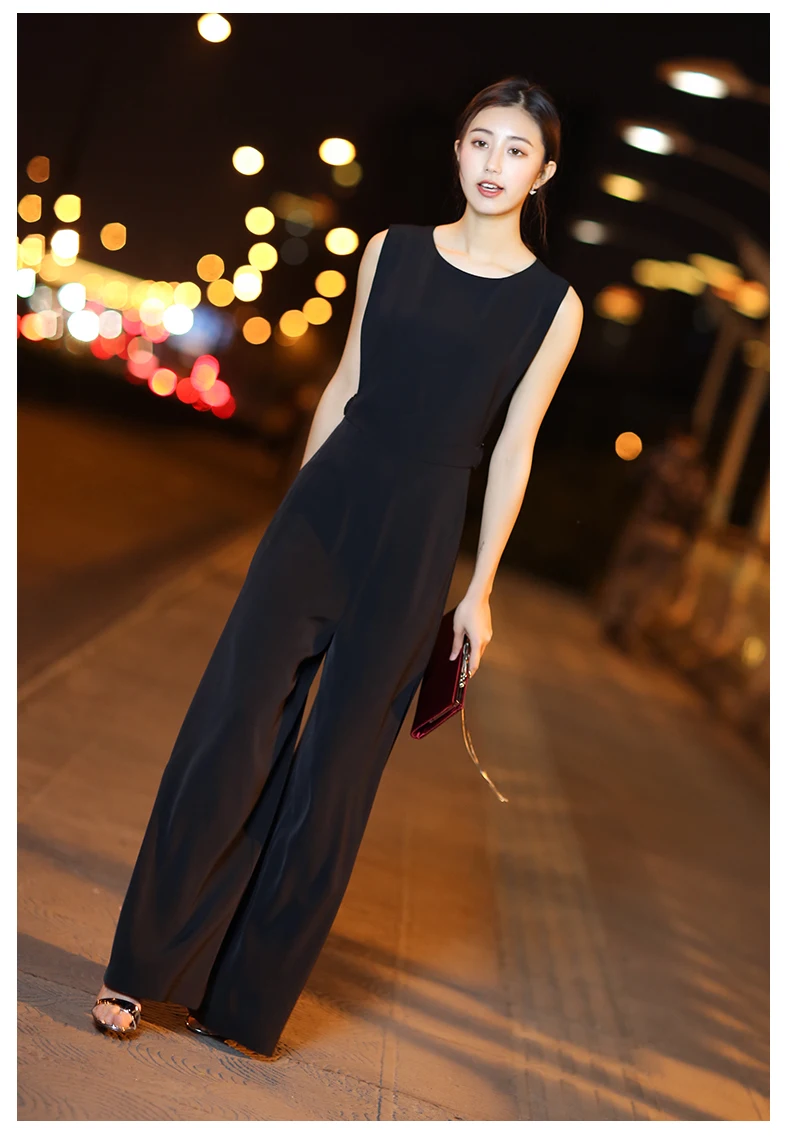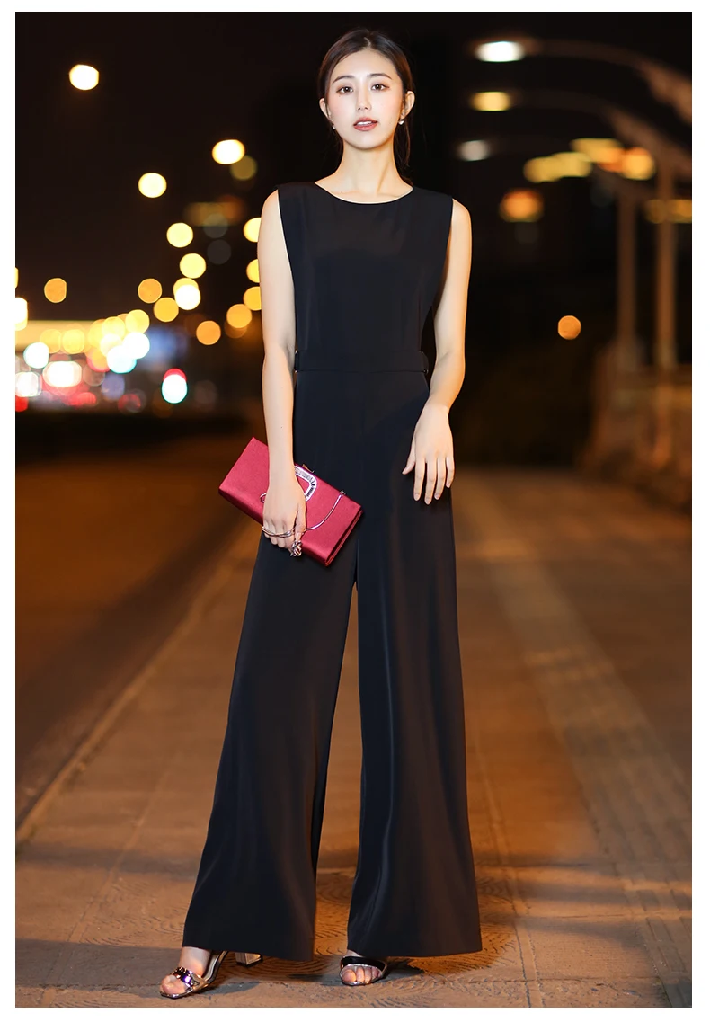 1.This product is suitable for tall female and customers who can get comfortable feeling. 2. It is absorbed in sweat and breathable characteristics. The fabric which looks elegant and High-end has a full drape. 3.The upper part of the jumpsuit is lined with fabric, which continues the uniformity of the product. The lower part is lined with very comfortable chiffon fabric to enhance breathability and prevent perspective. The unique waist design is made of high-grade materials. The metal buckle is decorated with a long invisible zip on the back for easy wearing. The unique trousers design greatly enhances the comfort of wearing.