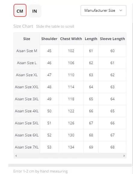 1. All measurements are in CM with 1-2cm measurment tolerance