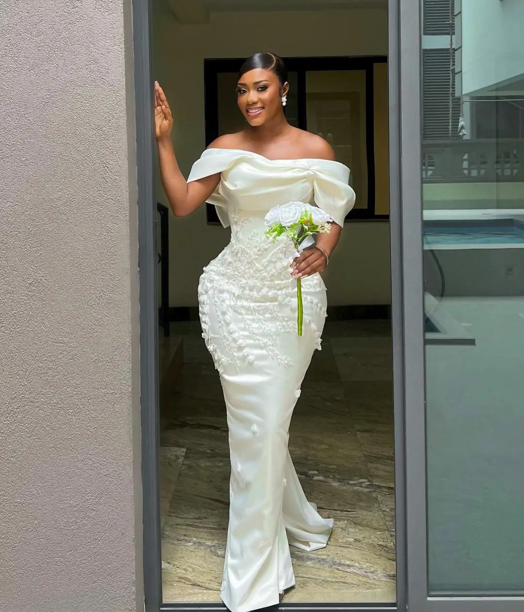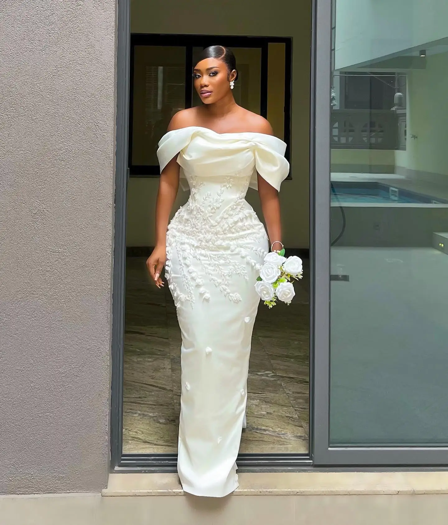 QueenLine Vintage Off The Pleat Lace Applique Seath Mermaid Back Bow Wedding Dress