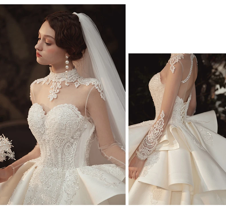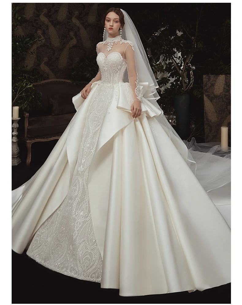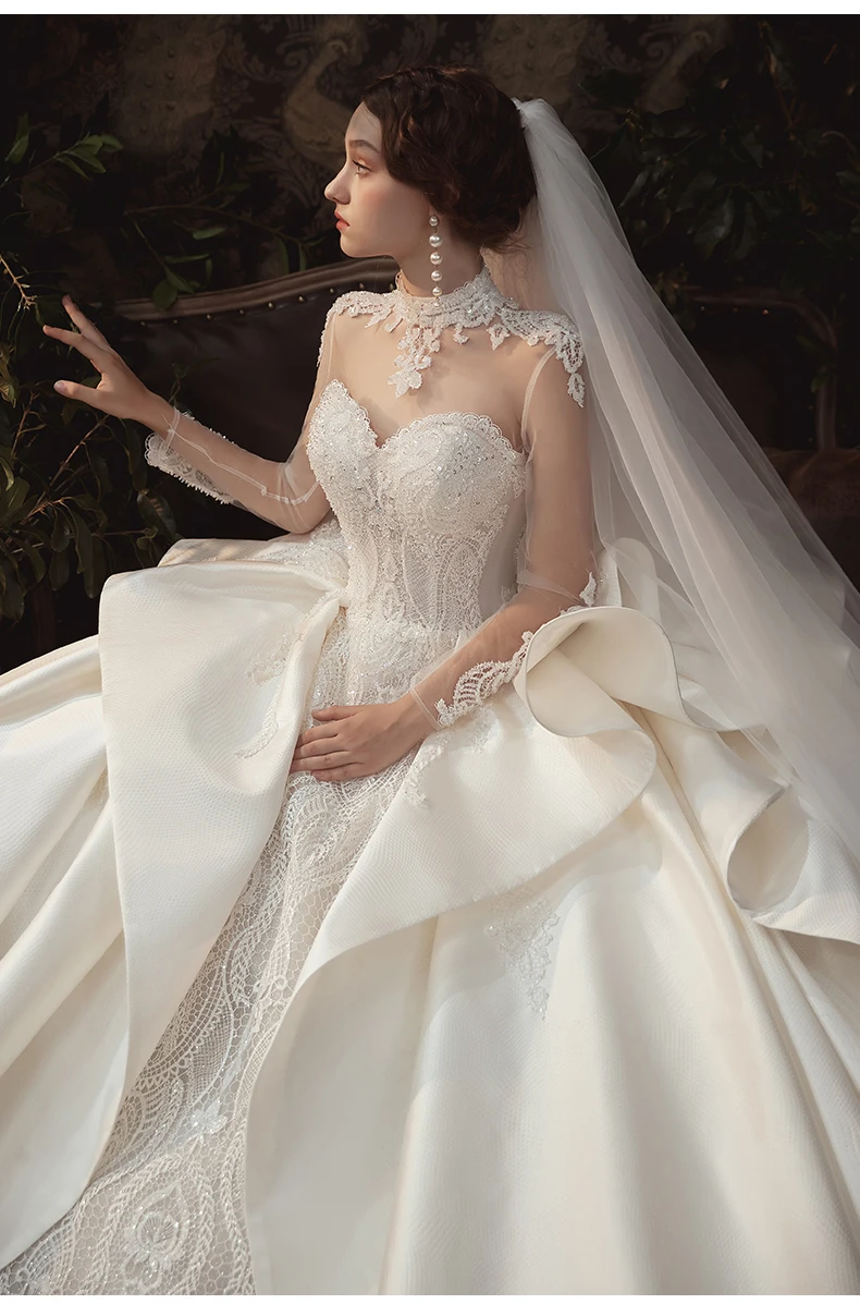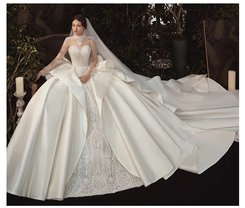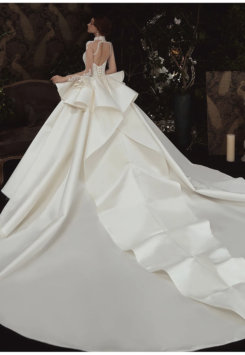 QueenLine Gorgeous crystal Cathedral Train Satin Wedding Dress Wedding Gown Robe De Mariee Vestido De Casamento Abito Da Sposa Mariage
