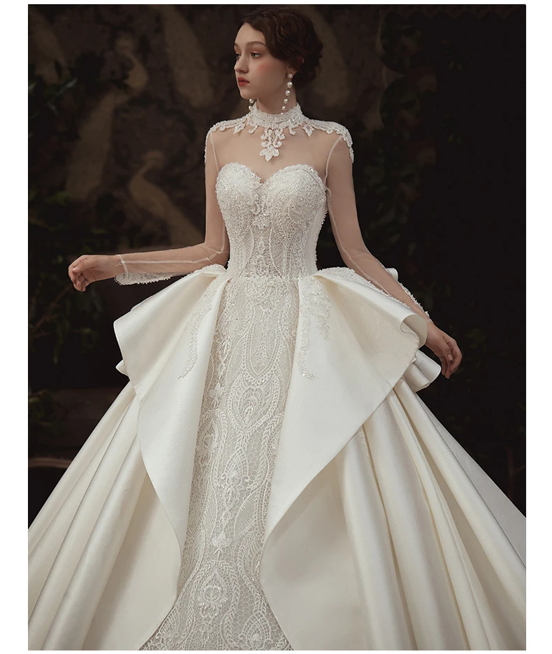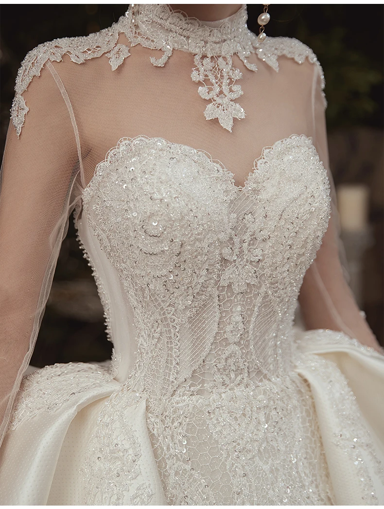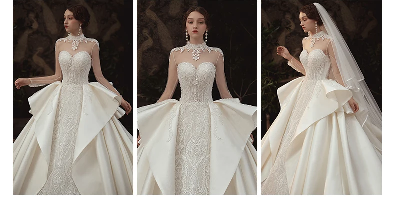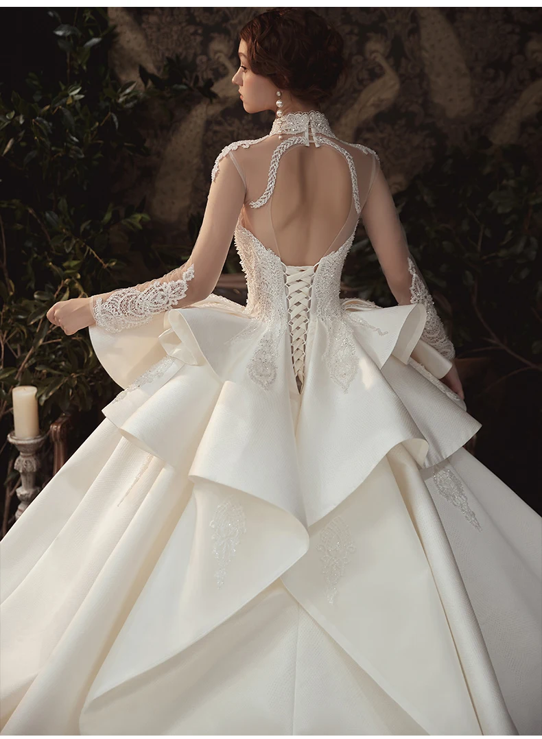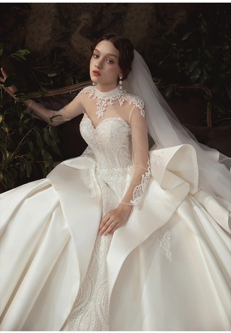 QueenLine Gorgeous crystal Cathedral Train Satin Wedding Dress Wedding Gown Robe De Mariee Vestido De Casamento Abito Da Sposa Mariage