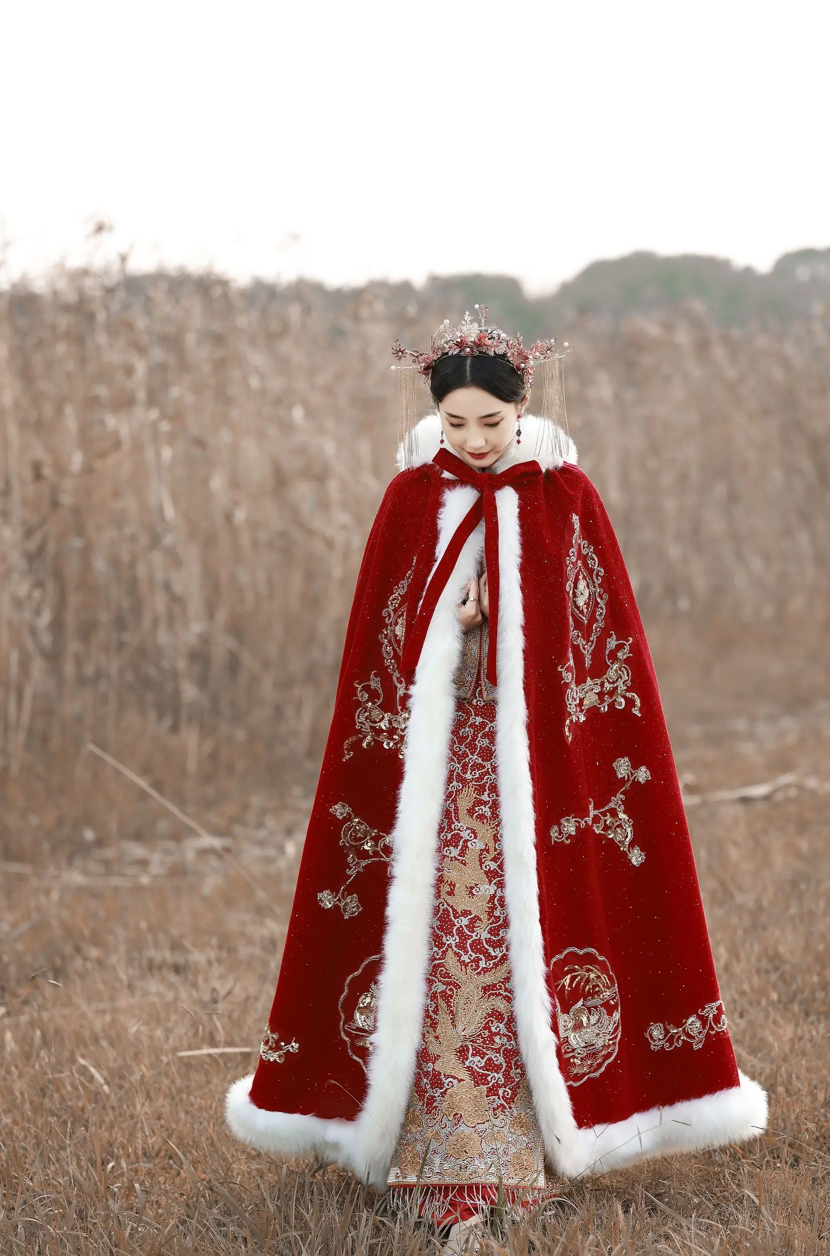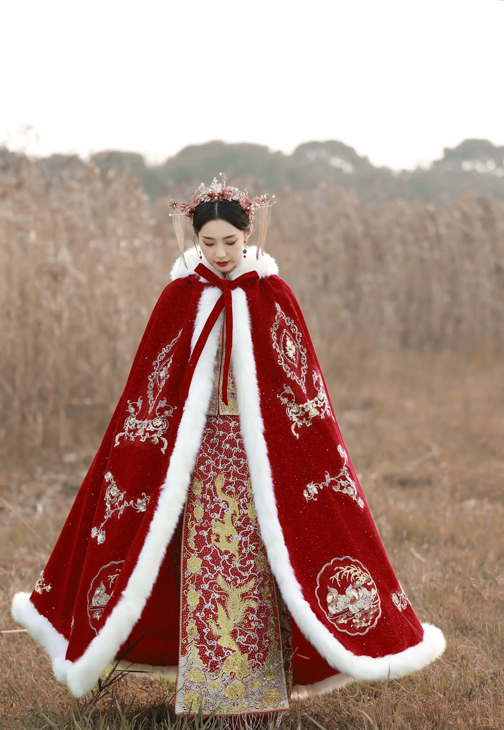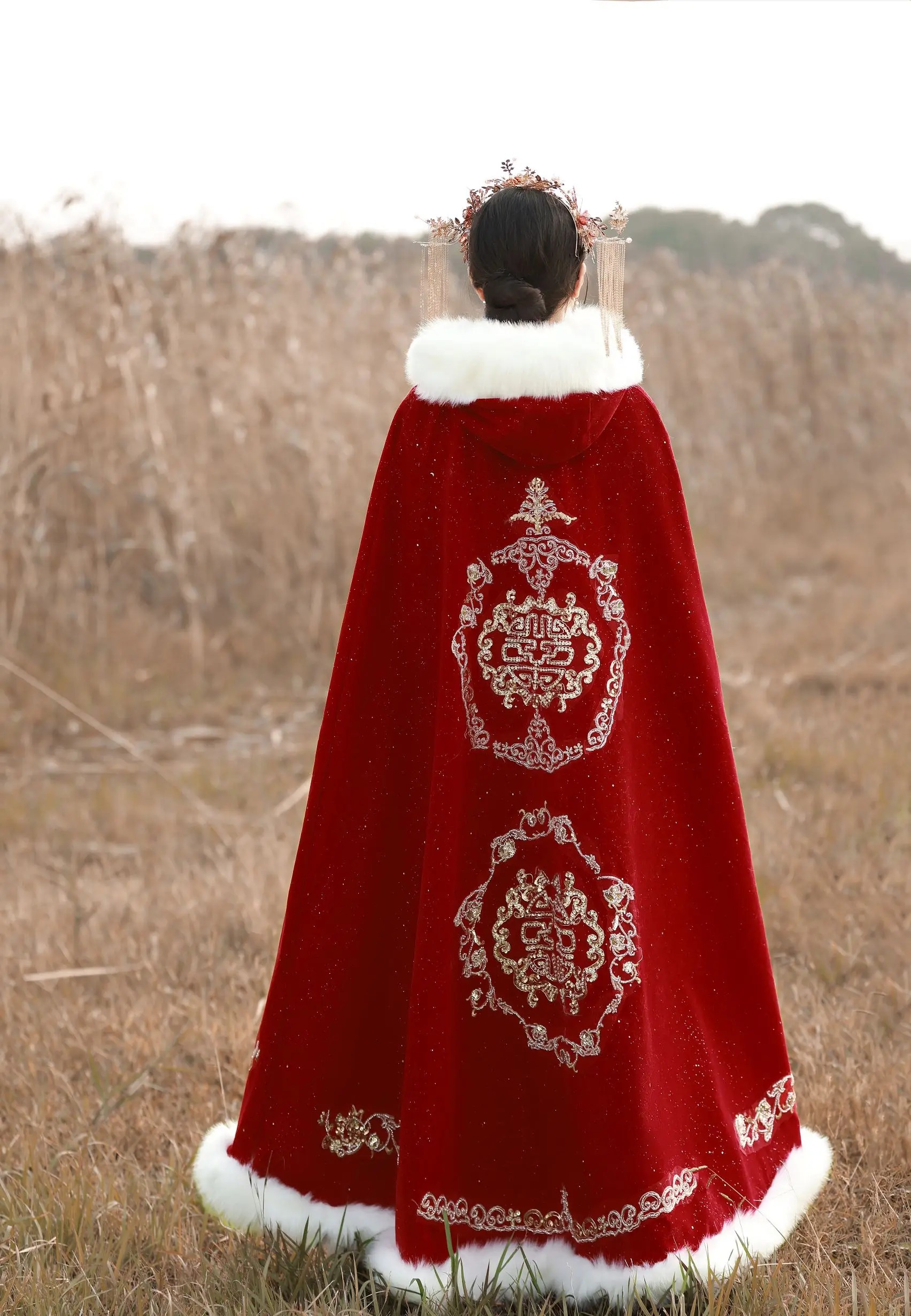 Sale Quick view Choose Options QueenLine Winter Long Warm Bridal Wrap with Gold Embroidery Dark Red Wedding Cloak Velvet Cape for Bride MSRP: $618.20 Was: $556.38 Now: $500.74 Quick view Choose Options