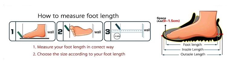 IMPORTANT: Please choose the suitable shoe size according to your foot length