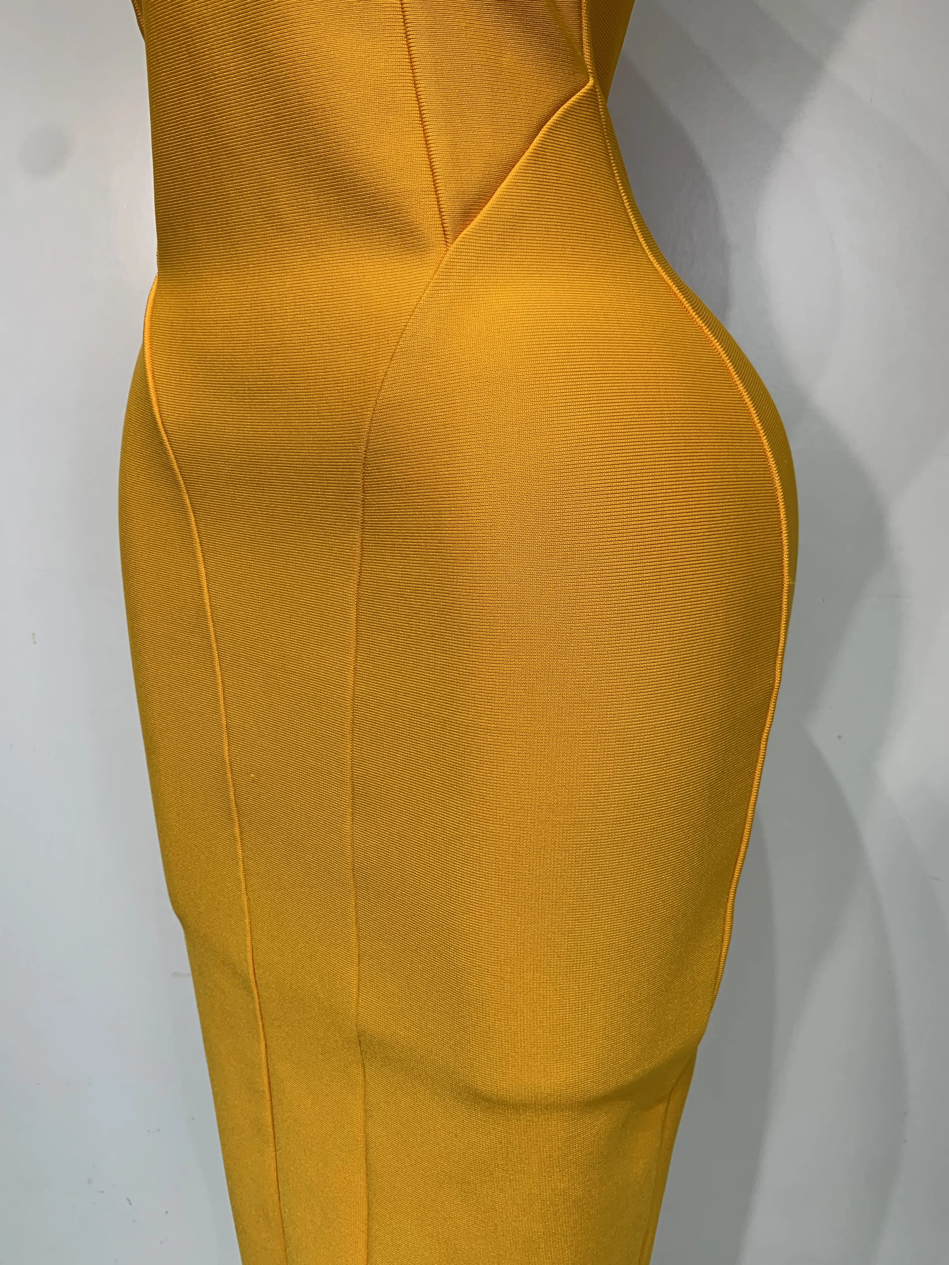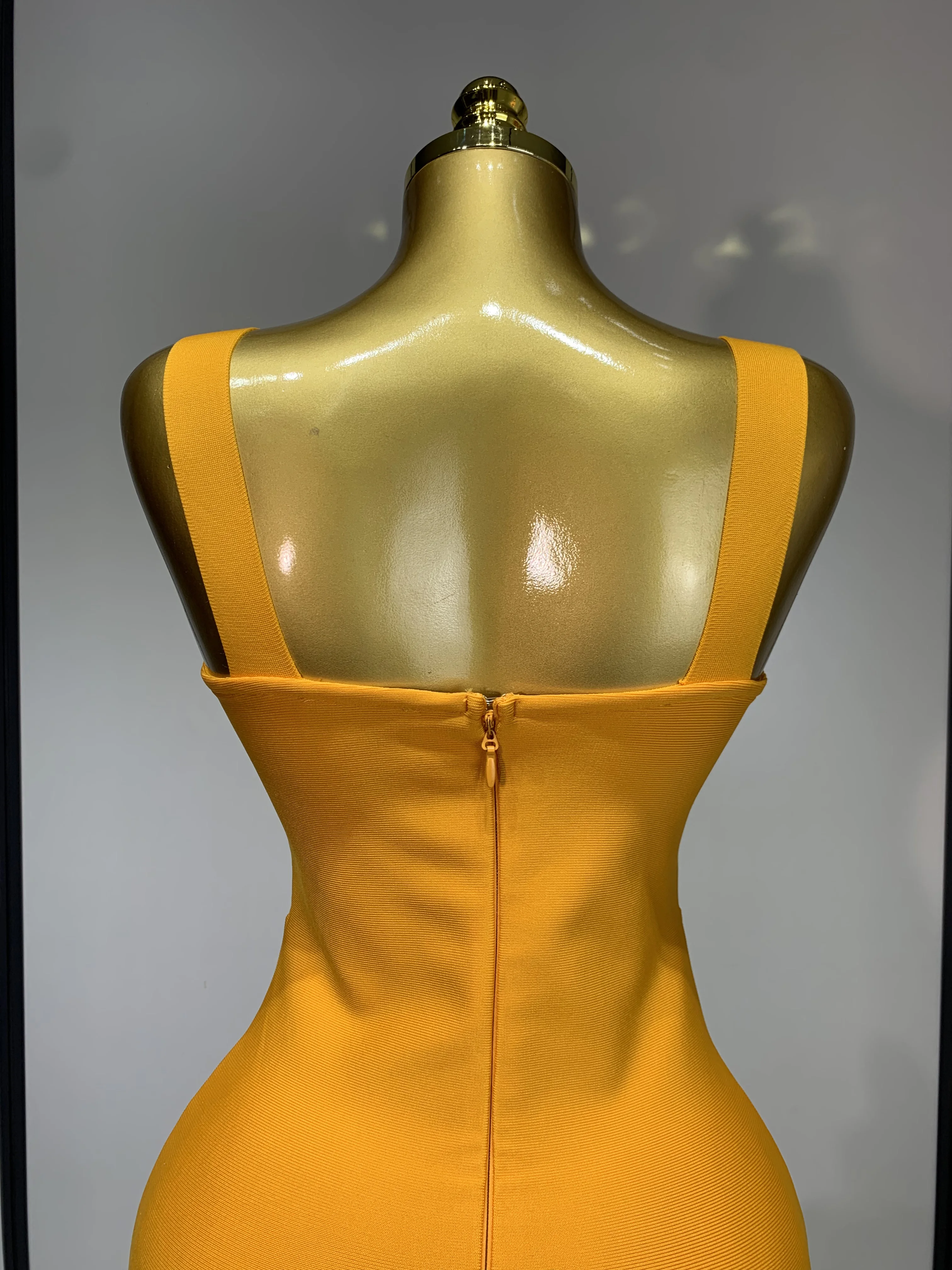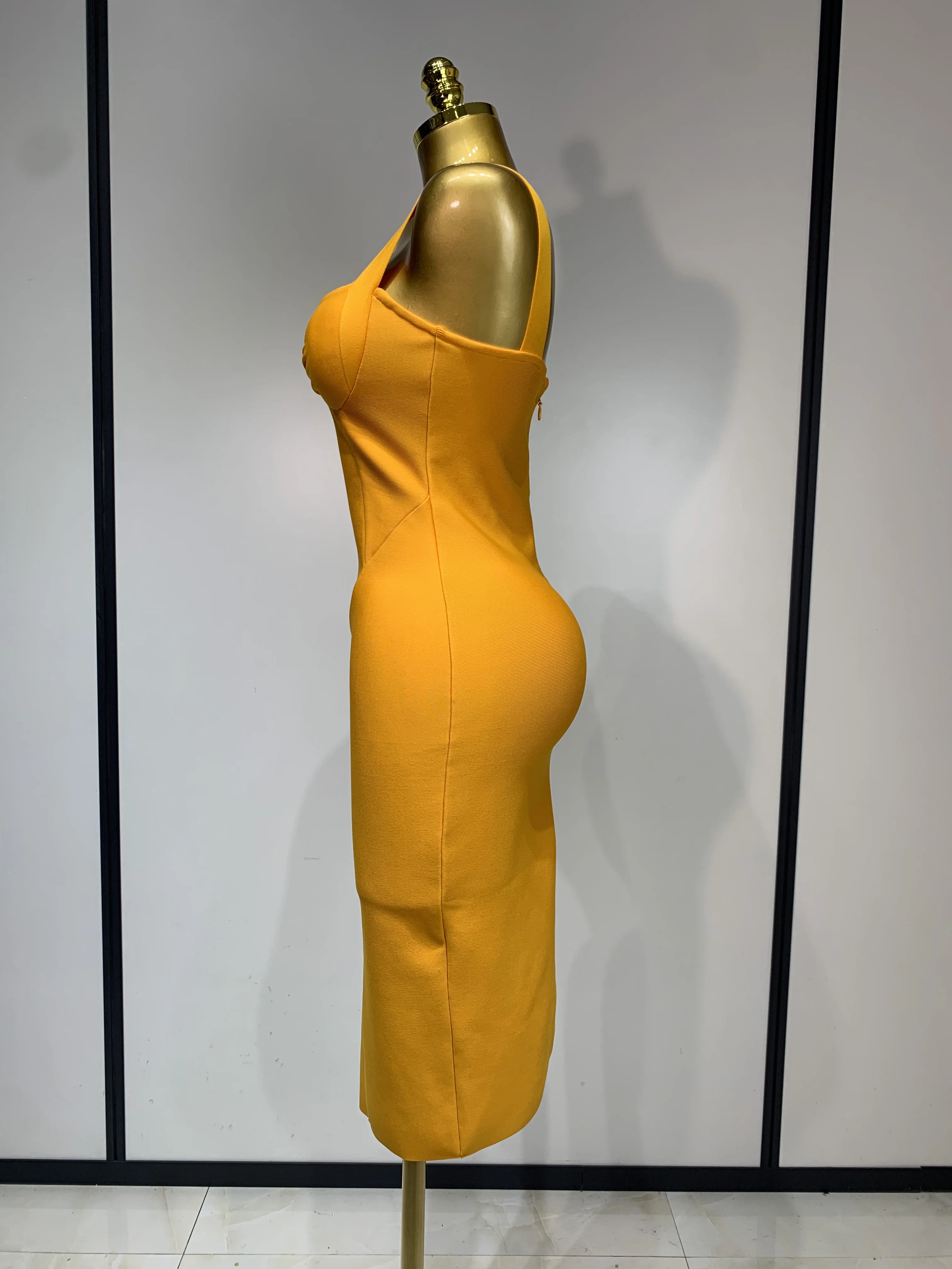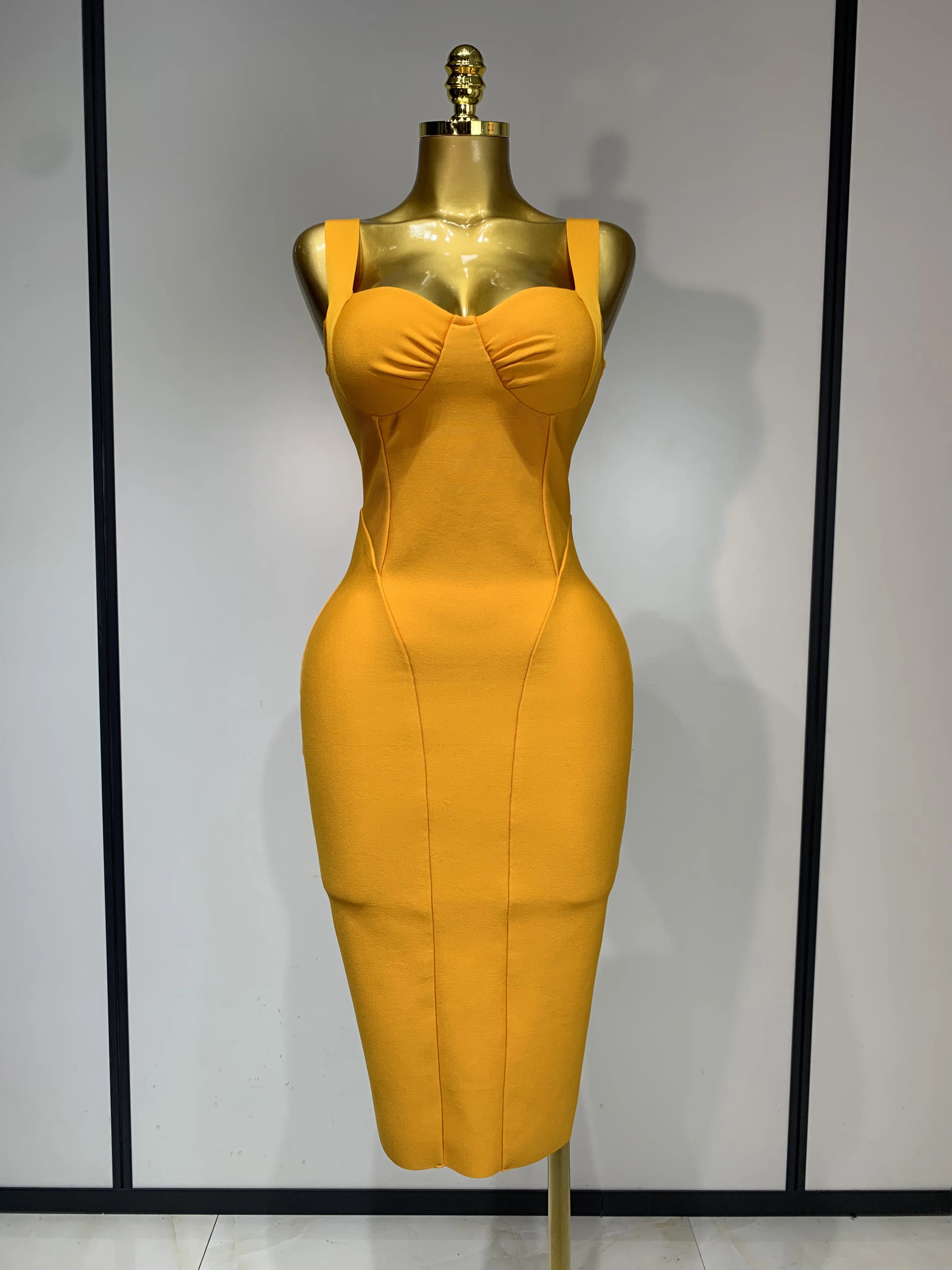 QuenLine Luxury Elegant Celebrity Sexy Orange Sleeveless Bodycon Bandage Evening Dress