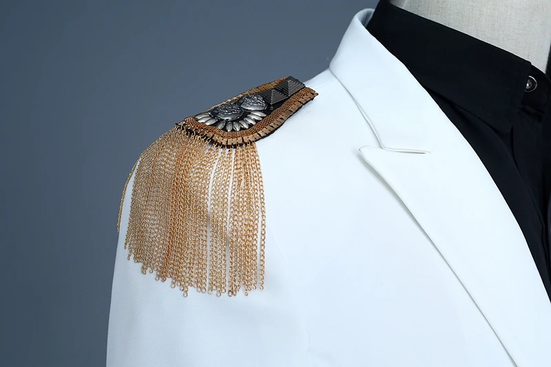 A. Our products(suit, jacket, pants, shirt and so on) does not include any accessories such as flower, hat, crutch etc(if these accessories show on the pictures).
